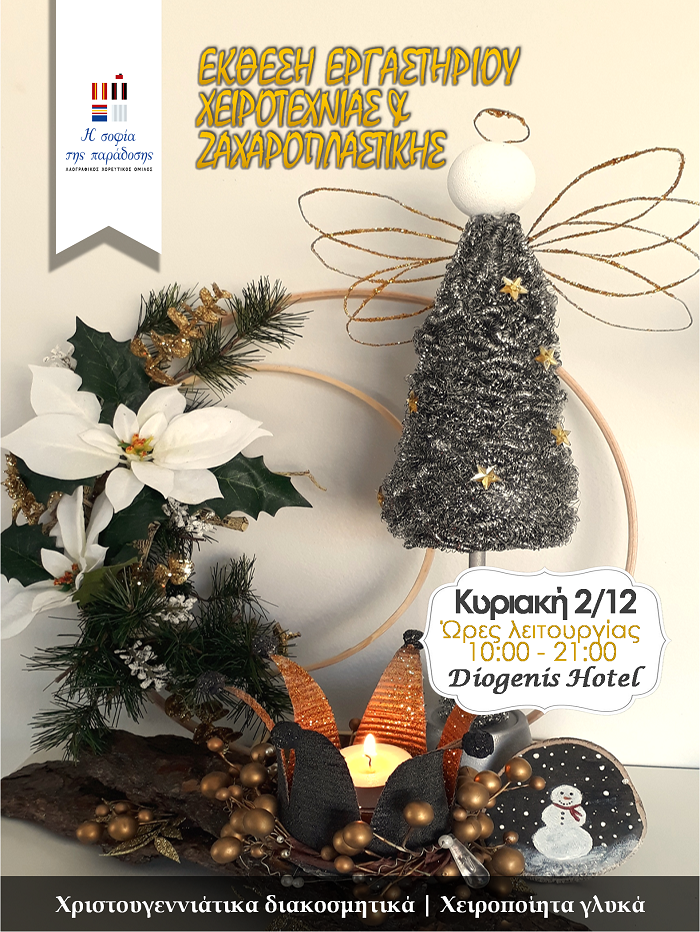 Χριστουγεννιάτικα διακοσμητικά είδη και χειροποίητα γλυκά εκθέτουν και φέτος τα μέλη του Εργαστηρίου Χειροτεχνίας & Ζαχαροπλαστικής του Λαογραφικού - Χορευτικού Ομίλου "η σοφία της παράδοσης".