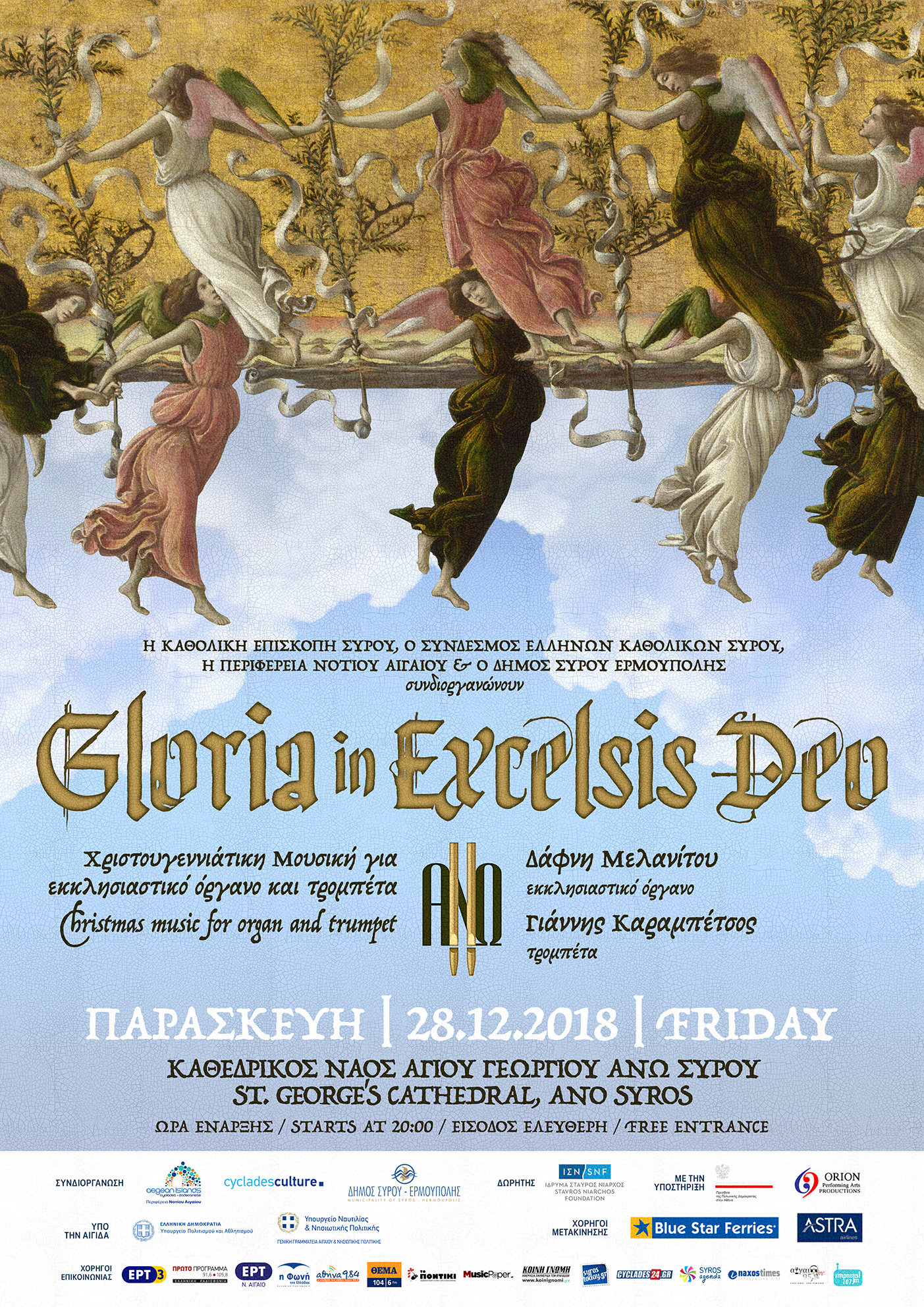 Την Παρασκευή, 28 Δεκεμβρίου 2018 θα πραγματοποιηθεί η φετινή Χριστουγεννιάτικη Συναυλία του Διεθνούς Φεστιβάλ Εκκλησιαστικού Οργάνου «ΑΝΩ» με τίτλο «Gloria in Excelsis Deo» (Δόξα ἐν ὑψίστοις Θεῷ).