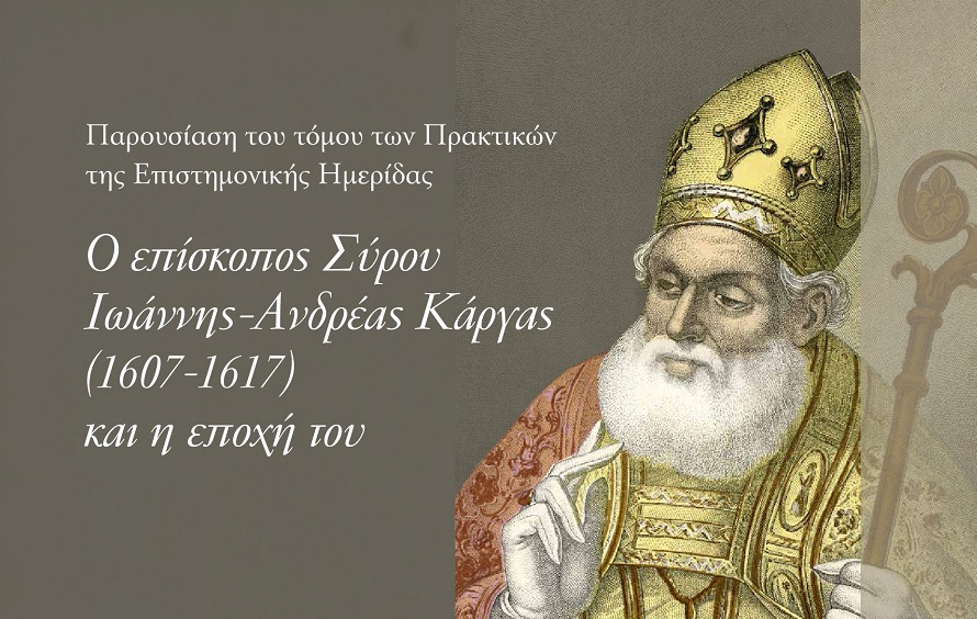 Η Καθολική Επισκοπή Σύρου και η Κίνηση Καθολικών Επιστημόνων και Διανοουμένων της Ελλάδας σας προσκαλούν στην παρουσίαση του τόμου των πρακτικών της Επιστημονικής Ημερίδας "Ο Επίσκοπος Σύρου Ιωάννης Ανδρέας Κάργας και η εποχή του" τη Δευτέρα 4 Μαρτίου (7μμ) στην αίθουσα εκδηλώσεων της Ιεράς Μονής Αδελφών του Αγίου Ιωσήφ (Εμπορικό Κέντρο Attrium).