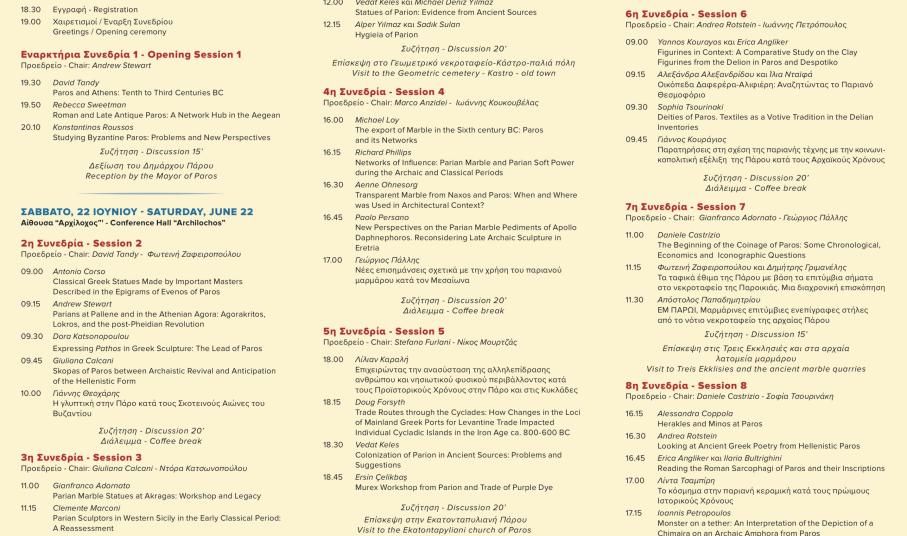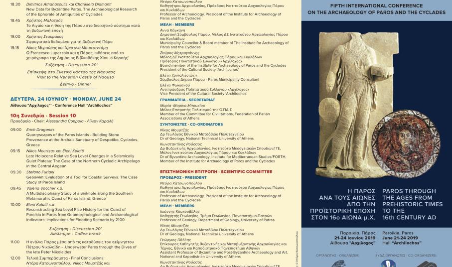 Ο Δήμος Πάρο, ο Πολιτιστικός Σύλλογος Πάρου "Αρχίλοχος" και το Ινστιτούτο Αρχαιολογίας Πάρου και Κυκλάδων, προσκαλούν το κοινό στην εναρκτήρια τελετή και συνεδρία του πέμπτου Διεθνούς Συνεδρίου Αρχαιολογίας Πάρου και Κυκλάδων, με θέμα "Η Πάρος ανά τους αιώνες: Από την Προϊστορική εποχή στον 16ο αιώνα μ.Χ".