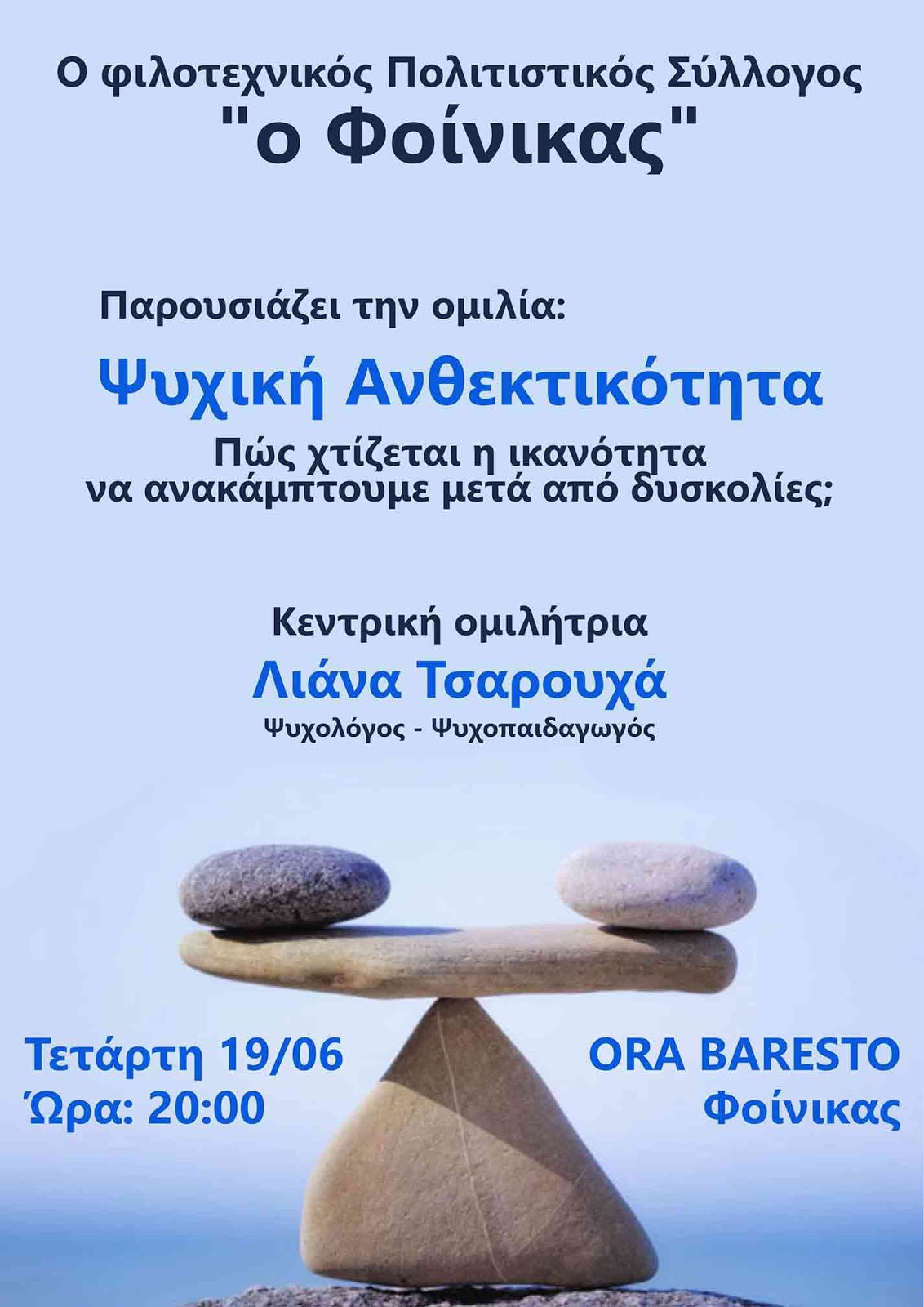 Ομιλία στον Φοίνικα με θέμα "Ψυχική Ανθεκτικότητα"
