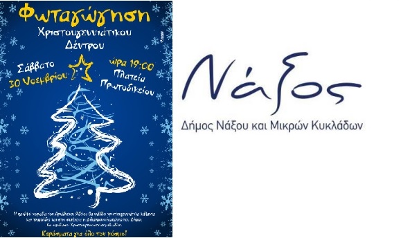Ο Δήμος Νάξου και Μικρών Κυκλάδων σας προσκαλεί στη Φωταγώγηση του Χριστουγεννιάτικου Δέντρου, το Σάββατο 30 Νοεμβρίου 2019 και ώρα 19:00, στην Πλατεία Πρωτοδικείου.