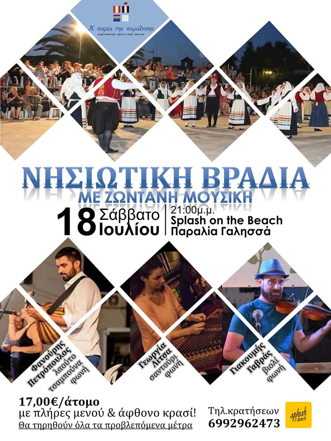 Ένα μήνυμα αισιοδοξίας μέσα στην κρίση του κορωνοιου , αποφάσισε να δώσει ο Λαογραφικός Χορευτικός Όμιλος " η σοφία της παράδοσης" με μια νησιωτική βραδιά με εξαίρετους μουσικούς το Σάββατο 18/7/2020 στο κέντρο splash on the beach