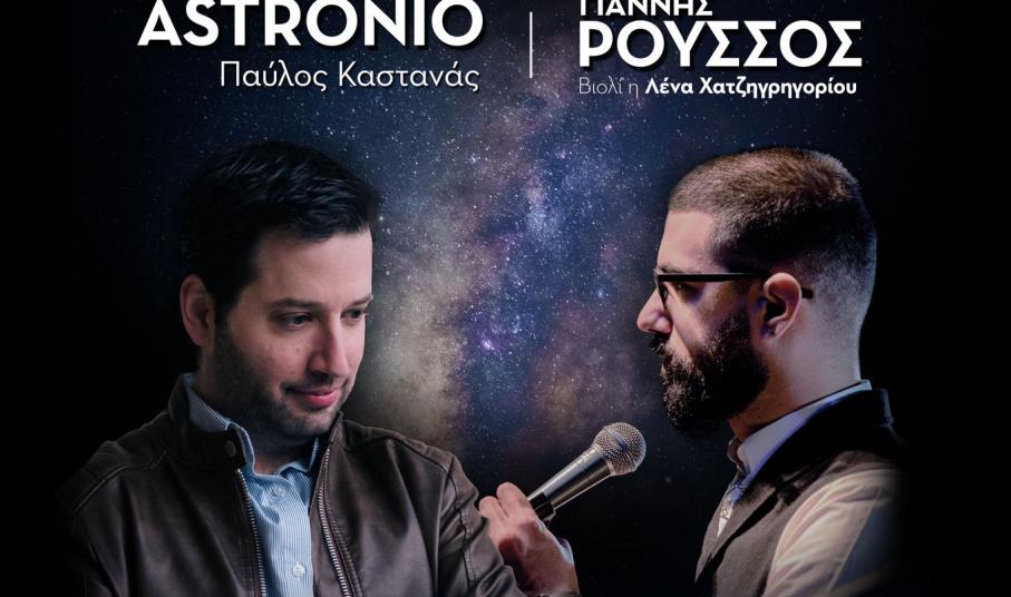 Ο αστροφυσικός Παύλος Καστανάς, γνωστός απ’ το διαδικτυακό κανάλι «Astronio», και ο μουσικός Γιάννης Ρούσσος, ο άνθρωπος πίσω από το «Science Behind Music», σας προσκαλούν σε μια μοναδική βραδιά που παντρεύει την αστροφυσική με τη μουσική. Σαν αστροναύτες, θα ταξιδέψετε στον μαγευτικό κόσμο της αστροφυσικής και των εντυπωσιακών διαστημικών φαινομένων και θα γνωρίσετε τη θέση του ανθρώπου μέσα στο γιγάντιο Σύμπαν. Παράλληλα, το αστρικό αυτό μάθημα παίρνει τη μορφή συναυλίας διανθισμένης με αγαπημένα ελληνικά τραγούδια τα οποία αναφέρονται στο διάστημα και στα ουράνια σώματα.