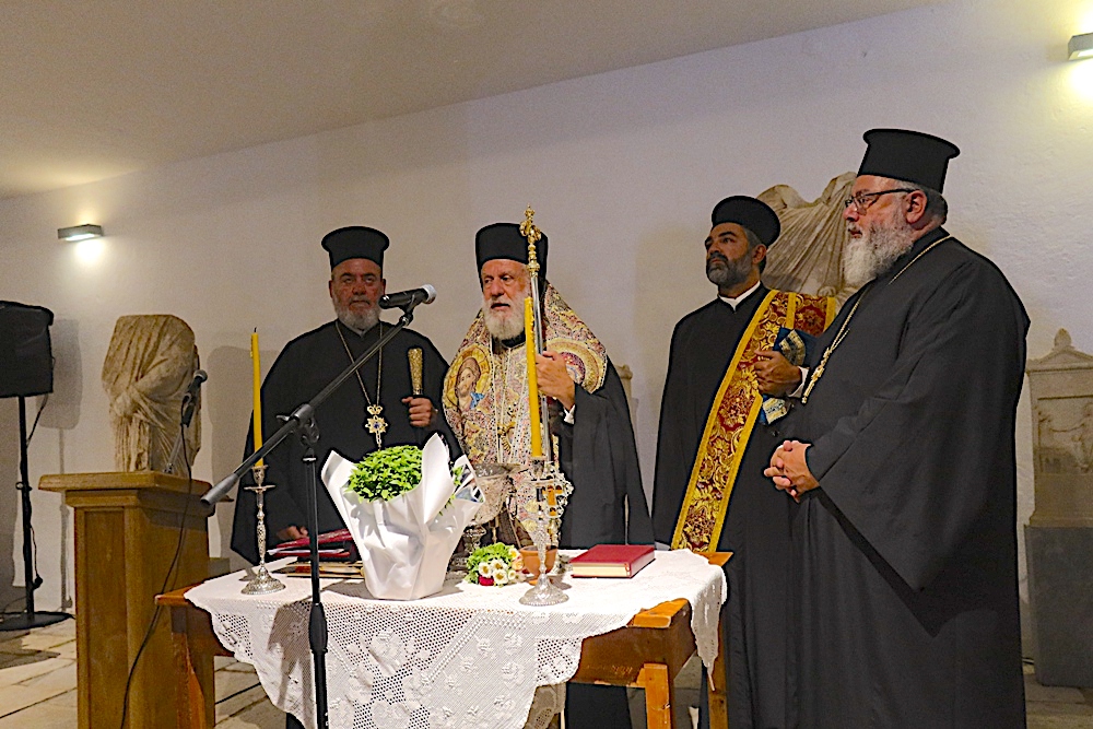 Στο χαιρετισμό του και αφού ετέλεσε τα εγκαίνια, ο Σεβασμιώτατος Μητροπολίτης, κ. Δωρόθεος Β’, ανέφερε ότι η εκδήλωση τελείται υπό το βάρος των όσων συμβαίνουν στο λεκανοπέδιο, που υποχρέωσαν την κα Υπουργό να μεταβεί εσπευσμένως στην Αθήνα, και με την ευχή να απεγκλωβιστούν όσοι βρίσκονται σε κίνδυνο.