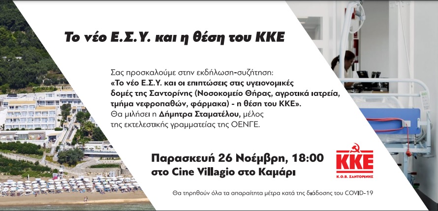 Εκδήλωση της Κομματικής Οργάνωσης του ΚΚΕ στη Σαντορίνη για το θέμα της Υγείας, την Παρασκευή 26 Νοεμβρίου.