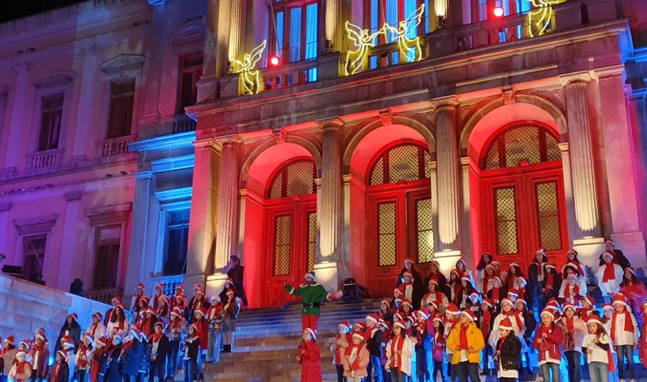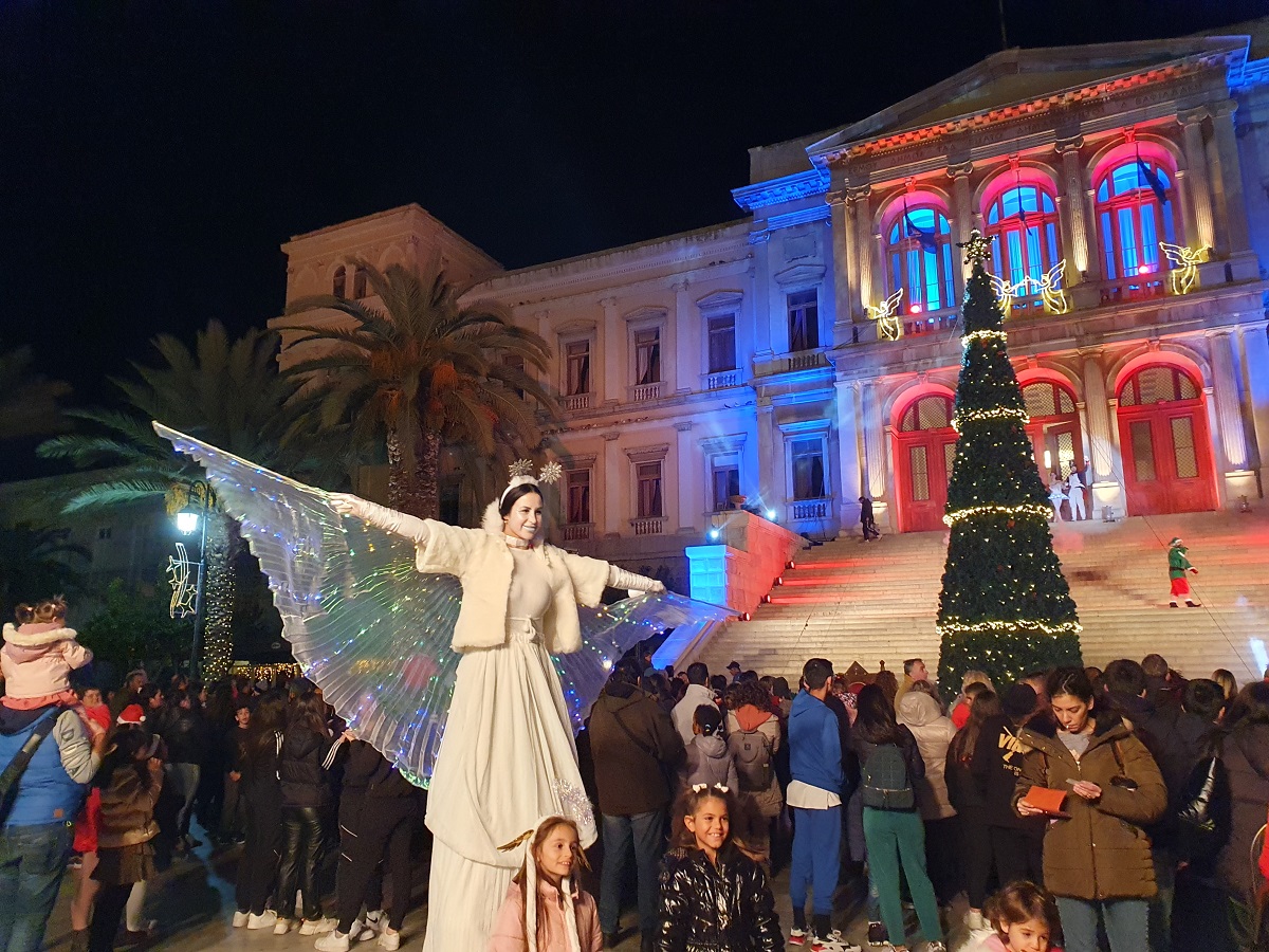 Με φαντασμαγορικό τρόπο ξεκίνησαν οι εκδηλώσεις για τα “Χριστούγεννα μαζί” το Σάββατο στην πλατεία Μιαούλη, παρουσία πλήθους κόσμου. Μικροί και μεγάλοι είχαν τη χαρά να απολαύσουν τα δρώμενα που έλαβαν χώρα, με αποκορύφωμα της βραδιάς την φωταγώγηση του εντυπωσιακού χριστουγεννιάτικου δέντρου και την έλευση του Άγιου Βασίλη, ο οποίος κατέβηκε από τα σκαλιά του Δημαρχείου και κάθισε στον θρόνο του, μπροστά από το φωτισμένο δέντρο, μετά της συζύγου του. Σύντομο χαιρετισμό προς το πλήθος, απηύθυναν η Αντιδήμαρχος Πολιτισμού, Αλίκη Λεονταρίτη και ο Δήμαρχος Σύρου, Νίκος Λειβαδάρας.