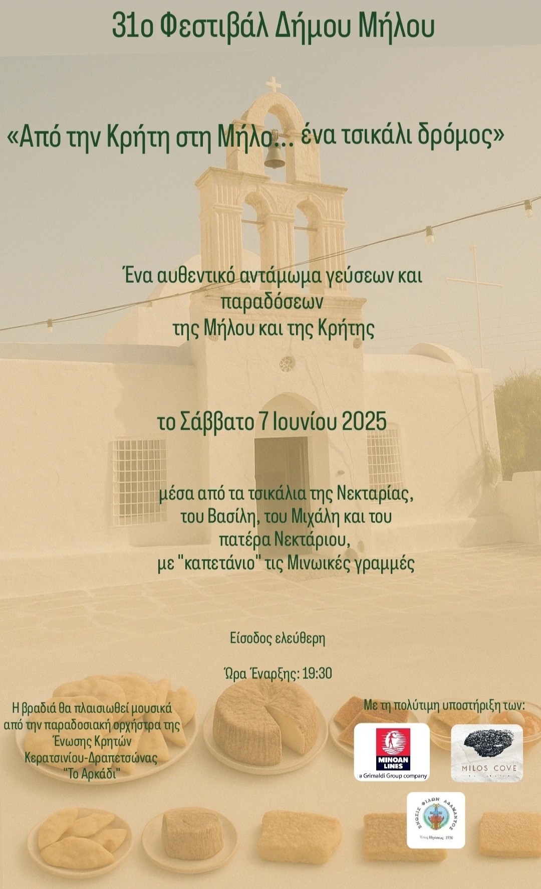 Η εκδήλωση αποτελεί ένα αντάμωμα γεύσεων και παραδόσεων της Μήλου και της Κρήτης, με «καπετάνιο» τις Μινωικές Γραμμές.