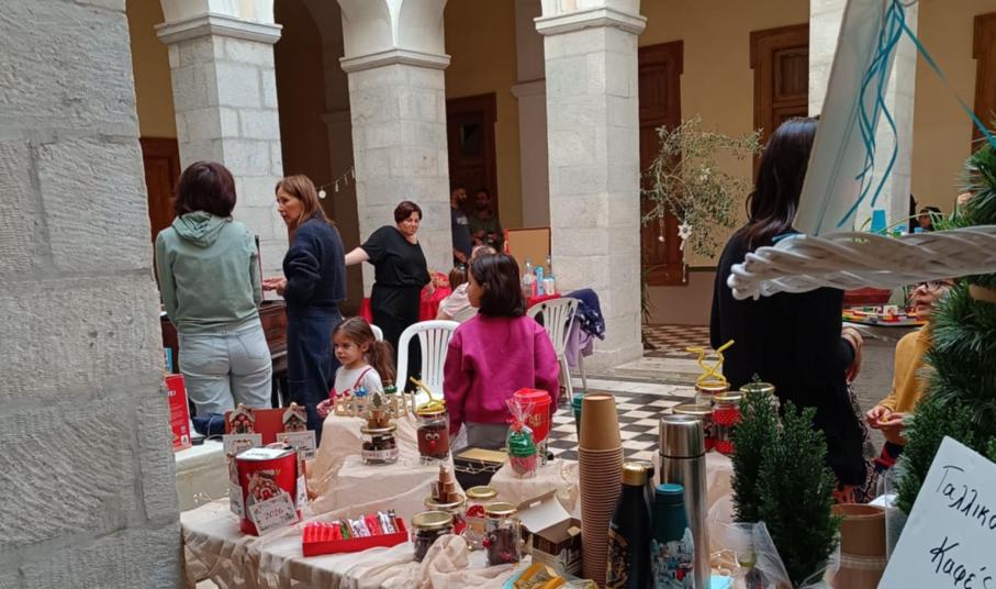 Και μπορεί οι άσχημες καιρικές συνθήκες, με τις βροχοπτώσεις που επικράτησαν τις προηγούμενες ημέρες, να χάλασε και να ανέτρεψε τον πρωταρχικό σχεδιασμό για τη δημιουργία ενός μεγάλου χριστουγεννιάτικου χωριού γύρω από το στολισμένο δέντρο της πλατείας Μιαούλη, εντούτοις η διοργάνωση στέφθηκε με απόλυτη επιτυχία, μετατρέποντας τον ισόγειο χώρο του δημαρχιακού μεγάρου σε ένα μεγάλο bazaar με πρωτότυπες δημιουργίες και πολύ παιχνίδι.