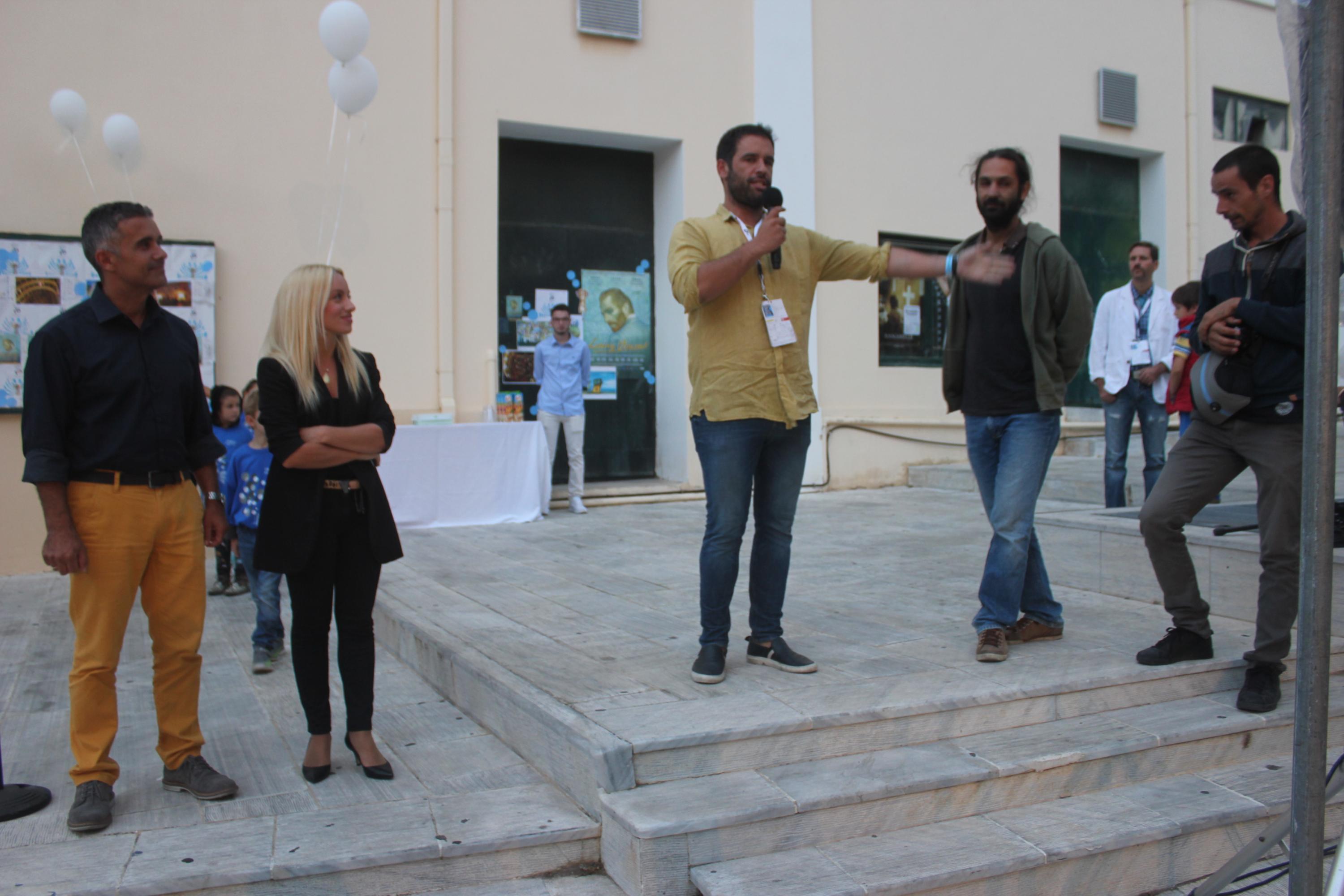 Η χθεσινή ήταν μία ημέρα ιδιαίτερα γιορτινή και τιμητική για το Animasyros, καθώς το απόγευμα πραγματοποιήθηκαν τα αποκαλυπτήρια του γλυπτού Animaspyros από τον Δήμαρχο Σύρου-Ερμούπολης, Γιώργο Μαραγκό. Η χαρακτηριστική μασκότ του Φεστιβάλ σχεδιάστηκε το 2008 από τον Πέτρο Χριστούλια (character design) και αναπτύχθηκε σε τρισδιάστατη φιγούρα από τον Κωνσταντίνο Πέτρου (character developer) γλυπτό, φιλοτεχνημένο από τους γλύπτες Γιώργο Κοντονικολάου, Χρήστο Μπληγιάννο και Ηλία Σιψά από το Β’ Eργαστήριο Γλυπτικής του Καθ. Γιώργου Λάππα, με επιμέλεια της Καθ. Αφροδίτης Λίτη της Ανωτάτης Σχολής Καλών Τεχνών. Το γλυπτό του Animaspyros βρίσκεται από χθες στο αγαπημένο του σημείο: ακριβώς απέναντι από το ιστορικό Θέατρο Απόλλων – ένα σημείο αναφοράς για το Φεστιβάλ τα τελευταία 10 χρόνια!
