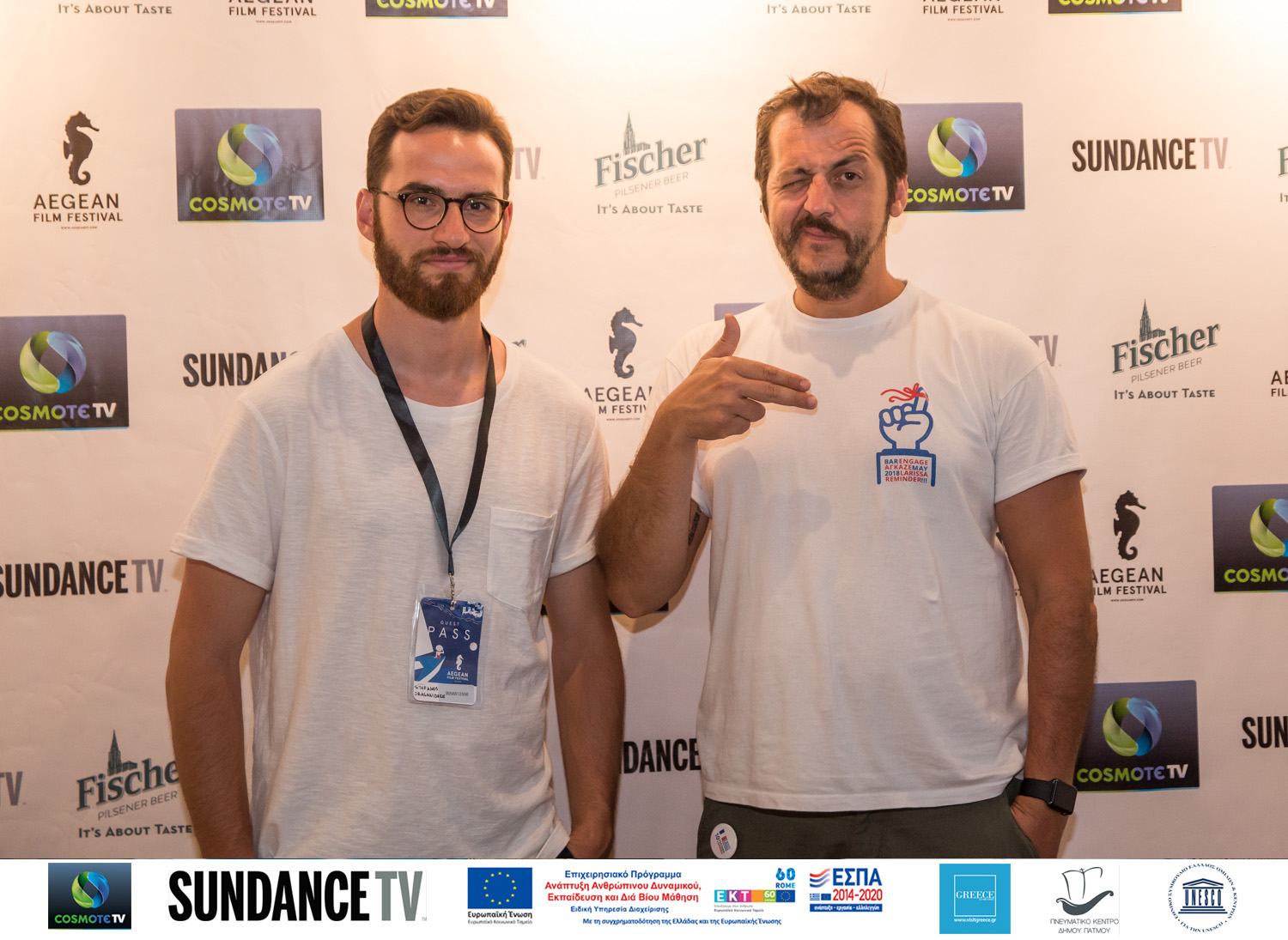 Ανανεώνοντας το ραντεβού μας για το 2018 με περισσότερες ταινίες, καλεσμένους, προορισμούς και αγάπη για τον κινηματογράφο θα θέλαμε να ευχαριστήσουμε όλους όσους μας υποστήριξαν: Τον μεγάλο χορηγό μας COSMOTE TV, το Sundance TV, το Πνευματικό Κέντρο Δήμου Πάτμου, το Ελληνικό Κέντρο Κινηματογράφου, το National Geographic, τα Ξενοδοχεια, Patmos Aktis, Romeos, Skala, Chris και την Blue Star Ferries καθώς και την Fischer, την Sugar High και το Bobstudio. Το Aegean Film Festival βρίσκεται υπό την αιγίδα της UNESCO, την αιγίδα και την ευγενική υποστήριξη του Ελληνικού Οργανισμού Τουρισμού (Ε.Ο.Τ.). και το Επιχειρησιακό Πρόγραμμα «Ανάπτυξη Ανθρώπινου Δυναμικού Εκπαί- δευση και Δια Βίου Μάθηση» με τη συγχρηματοδότηση της Ελλάδας και της Ευρωπαϊκής Ένωσης. "