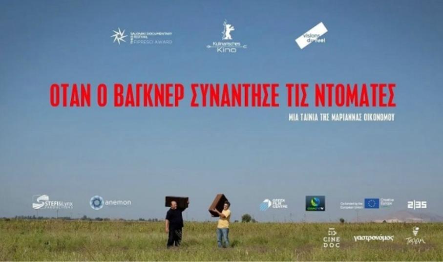 Για τη δύναμη των ανθρώπινων σχέσεων, τη σημασία να βλέπει κανείς την ζωή με διαφορετική ματιά και να επαναπροσδιορίζεται σε δύσκολους καιρούς, μιλάει με χιουμοριστική και ποιητική διάθεση η ταινία «Όταν ο Βάγκνερ Συνάντησε τις Ντομάτες» της Μαριάννας Οικονόμου. Σε ένα χωριό του Θεσσαλικού κάμπου που αργοπεθαίνει, δύο ξαδέλφια και πέντε γυναίκες, αποφασίζουν να κάνουν μια νέα αρχή. Με λίγη βοήθεια από τη μουσική του Βάγκνερ που παίζουν στα χωράφια και τις ιστορίες που διηγούνται για να πάρουν κουράγιο, επιχειρούν να διεισδύσουν στην παγκόσμια αγορά με τη βιολογική καλλιέργεια ενός παλιού σπόρου ντομάτας.