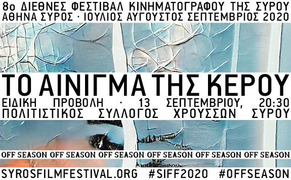 Το πρόγραμμα του #offseason Διεθνές Φεστιβάλ Κινηματογράφου της Σύρου συνεχίζεται με την ειδική προβολή του ντοκιμαντέρ «Το αίνιγμα της Κέρου» (2020) του Κώστα Μαχαίρα, στον Πολιτιστικό Σύλλογο Χρούσσων Σύρου, την Κυριακή 13 Σεπτεμβρίου 2020 στις 20:30. Το ντοκιμαντέρ παρακολουθεί τις ανασκαφές που πραγματοποιήθηκαν τα τελευταία χρόνια στην Κέρο και έφεραν στο φως εντυπωσιακά ευρήματα, τα οποία αλλάζουν σε μεγάλο βαθμό την αντίληψη των μελετητών για την προϊστορική Ελλάδα, αποδεικνύοντας πως εκεί υπήρχε «το αρχαιότερο ναυτικό ιερό στον κόσμο». Η δημοσιογράφος και παρουσιάστρια της ταινίας, Αντριάνα Παρασκευοπούλου θα την προλογίσει.