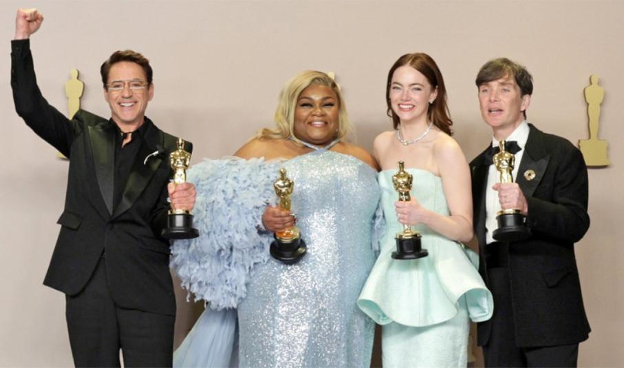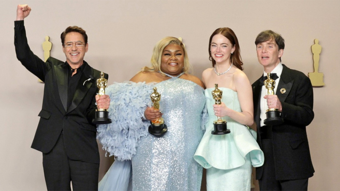 Ο Ρόμπερτ Ντάουνι Τζούνιορ κέρδισε το Όσκαρ Β' Ανδρικού Ρόλου για την ταινία «Οπενχάιμερ», στον ρόλο του γραφειοκράτη που μετατρέπεται σε νέμεση του κεντρικού ήρωα. Η παρουσία του στο πορτρέτο του πατέρα της ατομικής βόμβας το οποίο φιλοτέχνησε ο Κρίστοφερ Νόλαν είναι καθοριστική για την ταπείνωση του επιστήμονα μετά τον Β΄ Παγκόσμιο Πόλεμο. Επέτρεψε στον Ρόμπερτ Ντάουνι Τζούνιορ να επικρατήσει των άλλων διεκδικητών του βραβείου, των Ράιαν Γκόσλινγκ («Μπάρμπι»), Ρόμπερτ ντε Νίρο («Οι δολοφόνοι του ανθισμένου φεγγαριού»), Μαρκ Ράφαλο («Poor things») και Στέρλινγκ Κ. Μπράουν («American Fiction»)..