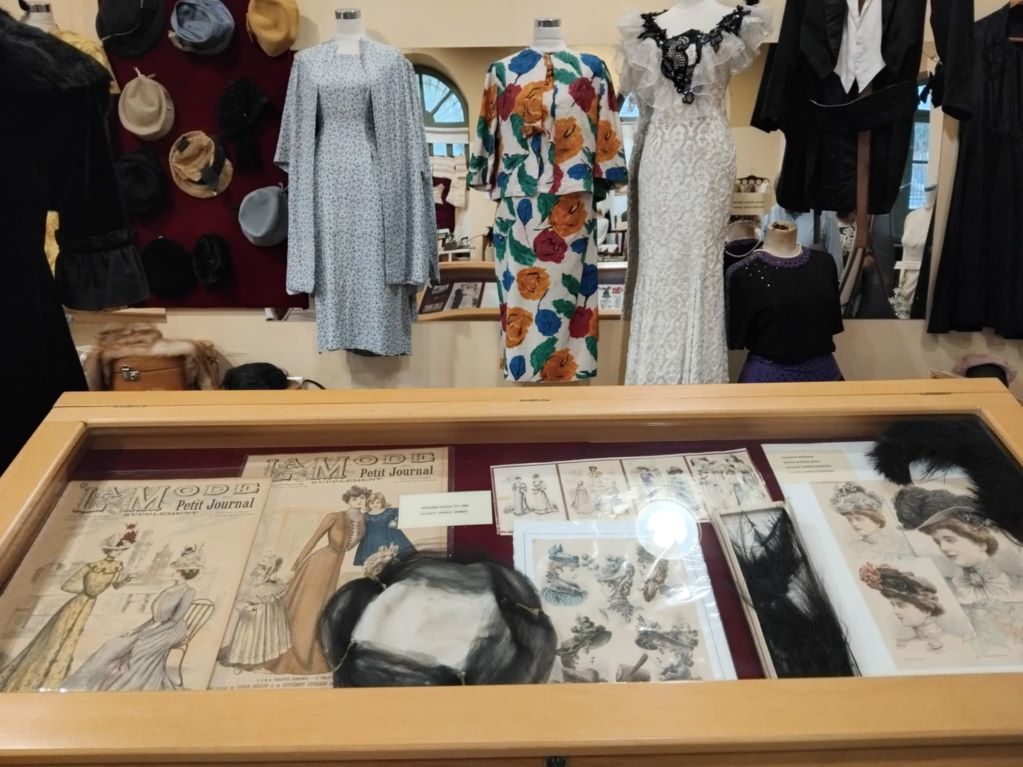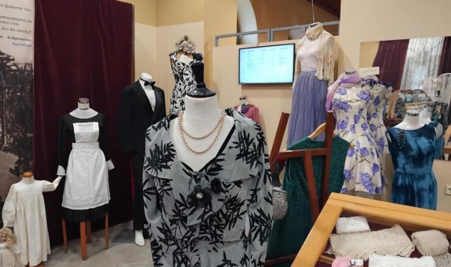 Από τις συλλογές μελών του Συλλόγου Φίλων Τεχνικού Πολιτισμού Ερμούπολης, αλλά και από δωρεές και παραχωρήσεις διαφόρων πολιτών, επιλέχθηκαν και εκτίθενται στο χώρο του Βιομηχανικού Μουσείου, ο πάγκος εργασίας "της μοδίστρας", τα υλικά και οι πρώτες ύλες, οι μηχανές τους, χειροκίνητες, ποδοκίνητες και ηλεκτρικές. Επιπλέον, δείγματα της παραγωγής της εποχής, που ξεχάστηκαν σε κάποια ντουλάπα και διασώθηκαν για να μας διηγηθούν την ιστορία τους. Ρούχα καθημερινά, ρούχα επίσημα, ενδυμασίες της "κατώτερης τάξης" ή του υπηρετικού προσωπικού, αλλά και της "αριστοκρατίας", η οποία μιμήθηκε και εισήγαγε τις ευρωπαϊκές τάσεις μόδας, με τη λάμψη και την αίγλη τους, καθώς επίσης και ρούχα αντρικά, παιδικά, γυναικεία, αλλά και αξεσουάρ.