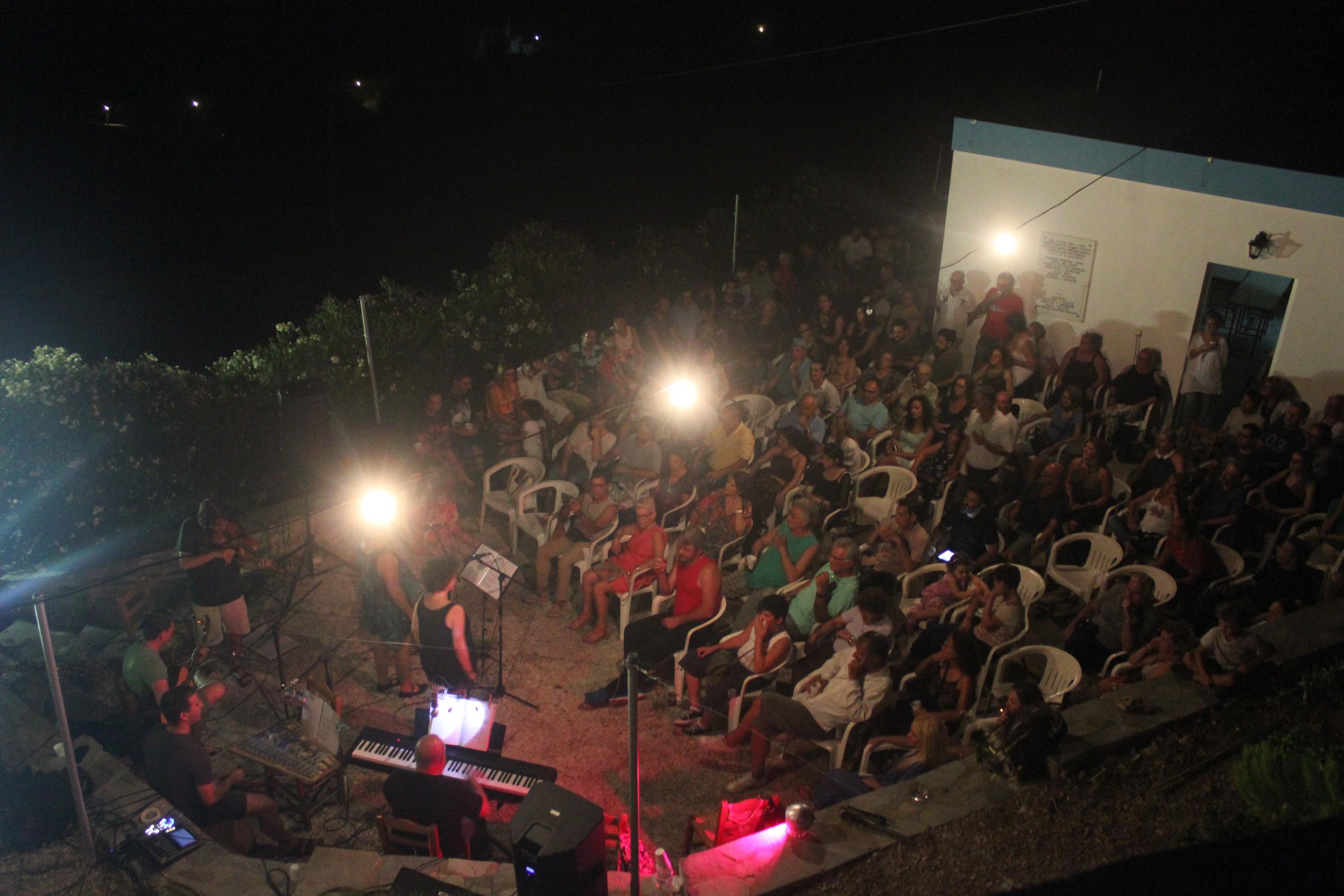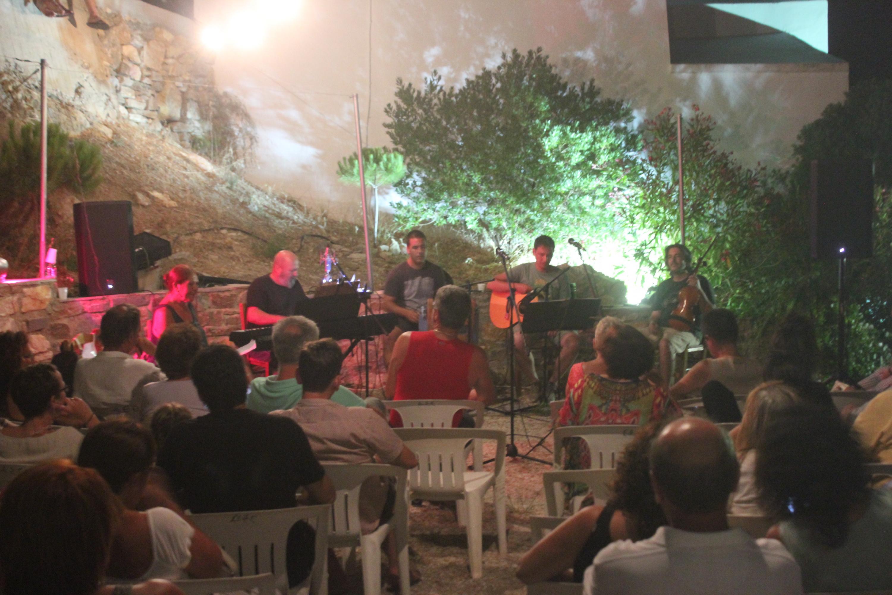Στο πλαίσιο του προγράμματος «Σύρος-Πολιτισμός 2017», το αγαπημένο τοπικό σχήμα παρουσίασε στο προαύλιο της Ενοριακής αίθουσας της Παναγίτσας, μοναδικά ακούσματα, μίξεις λόγου και φθόγγων που καταφέρνουν πάντα να θέτουν σε εγρήγορση και το μυαλό και τις αισθήσεις του κοινού τόσο με τις αλήθειες που κρύβουν, όσο και με την αιρετική ματιά τους, που ενίοτε σοκάρει.