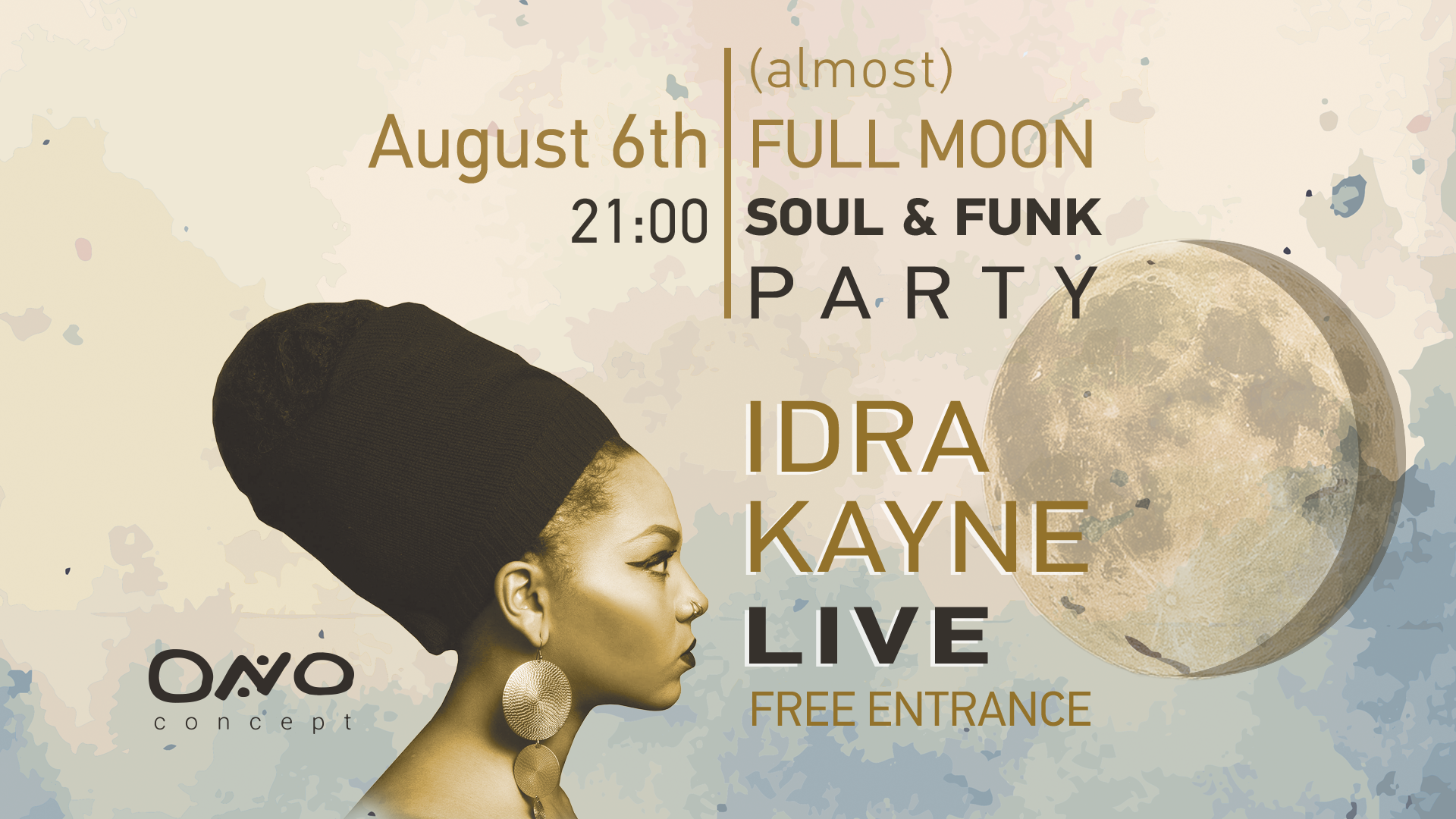 Η αποκάλυψη της soul funk σκηνής της Ελλάδος, Idra Kayne, έρχεται στην Σύρο και το ONO Concept, την Κυριακή 6 Αυγούστου στις 21:00, για ένα party που θα σκεπάζεται από το φως της πανσελήνου.