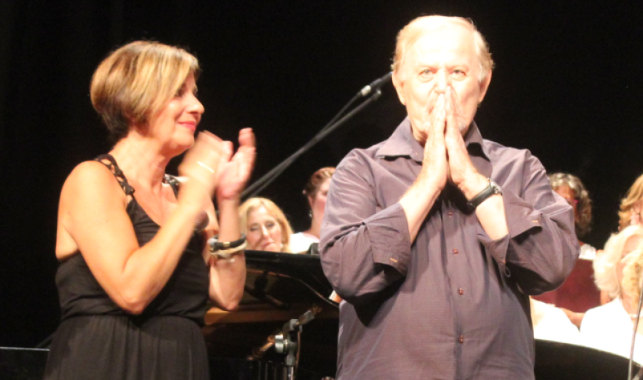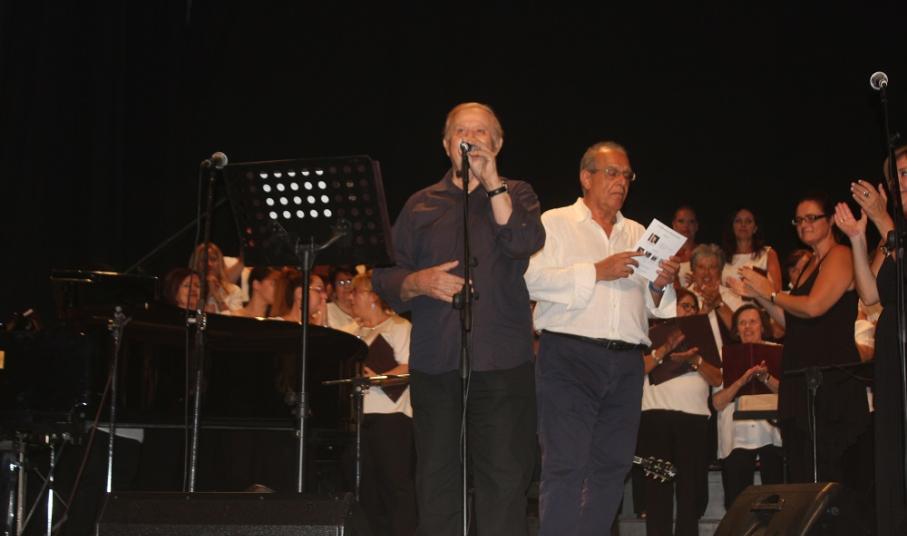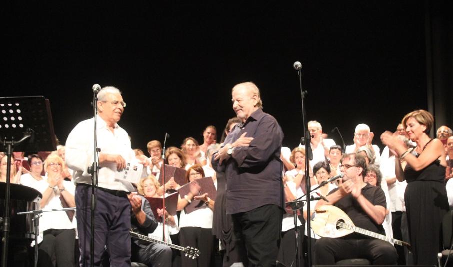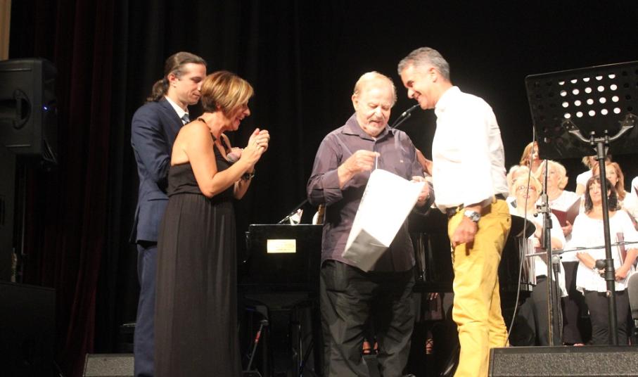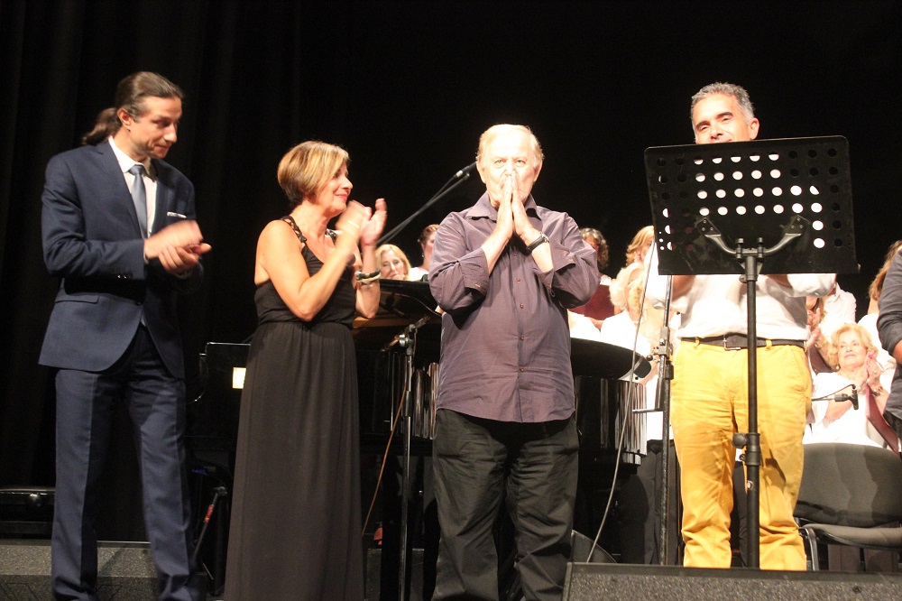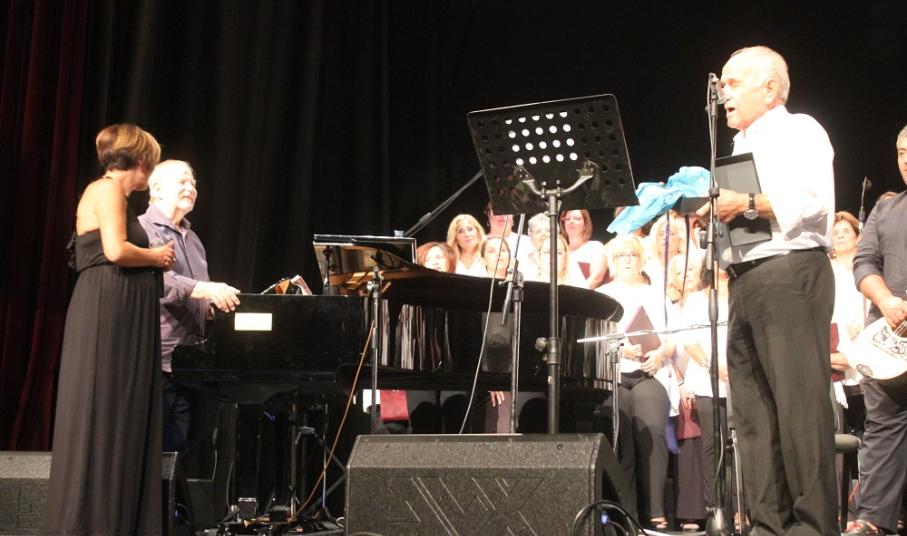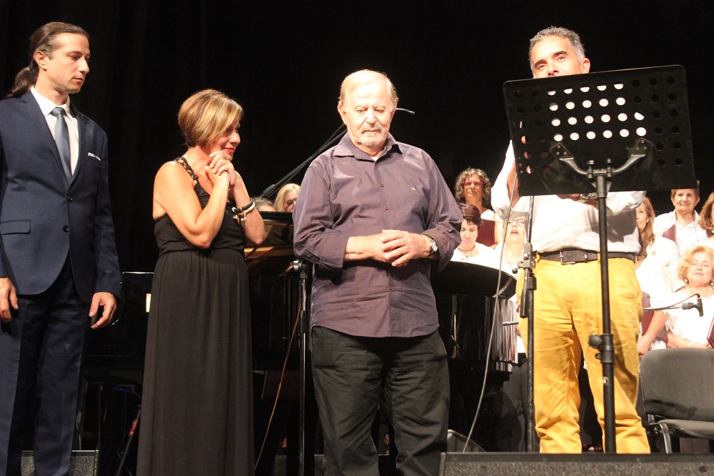 Η συγκίνηση του κοινού κορυφώθηκε με την παρουσία του Γιάννη Σπανού επί σκηνής, ο οποίος αφού καταχειροκροτήθηκε από το κοινό και παρέλαβε αναμνηστικά δώρα από τον Δήμαρχο Σύρου – Ερμούπολης, Γιώργο Μαραγκό, τον εκπρόσωπο της Περιφέρειας Νοτίου Αιγαίου Μάρκο Δαδάο και το διοικητικό συμβούλιο του Μ.Ο.Σ., συνόδευσε στο πιάνο τους ερμηνευτές και τη Χορωδία, την οποία και συνεχάρη για το σπουδαίο έργο της.
