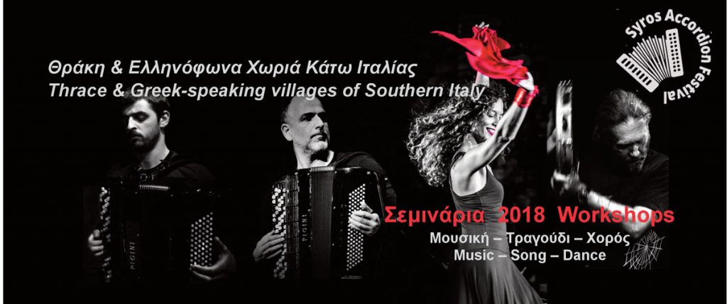 Με τη σειρά του, ο Βαγγέλης Παπαγεωργίου αναλαμβάνει τα ηνία ενός διαφορετικού σεμιναρίου μουσικής και προσέγγισης του ακορντεόν, μέσα από το πρίσμα της κουλτούρας της Κάτω Ιταλίας, της ιστορικά ελληνόφωνης αυτής γωνιάς της Μεσογείου, με τους διονυσιακούς ρυθμούς, τις σπαρακτικές μελωδίες και φυσικά τον αρχέγονο χορό της ταραντέλας, στις κατά τόπους μορφές της.