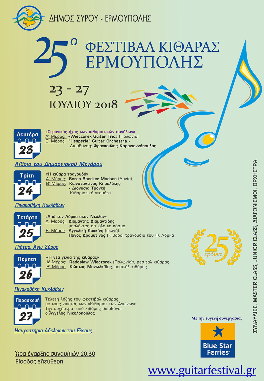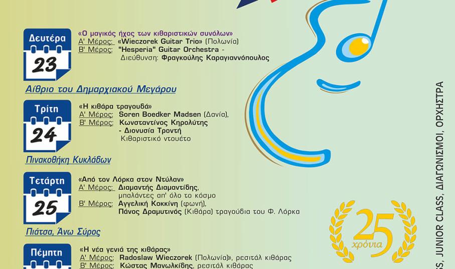 Το φεστιβάλ κιθάρας Ερμούπολης γιορτάζει φέτος 25 χρόνια συνεχούς διοργάνωσης.