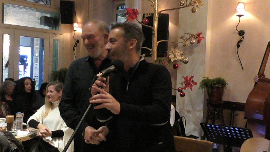 Στο ασφυκτικά γεμάτο ΜΕΓΑΡΟΝ ΚΑΦΕ της Σύρου παρουσίασε χθες το CD του με τραγούδια του πάνω στην ποίηση του Οικουμενικού Καβάφη... Το CD αυτό περιέχει 16 τραγούδια και 14 απαγγελίες. Η ατμόσφαιρα ήταν ζεστή και φιλική.