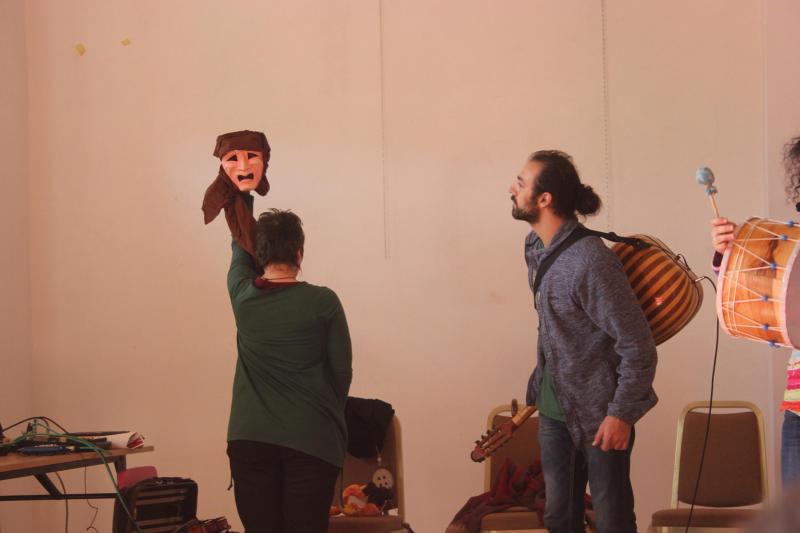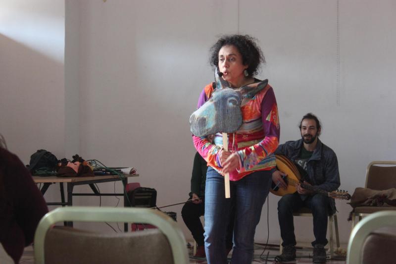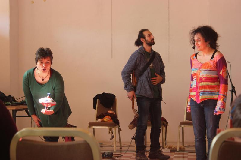 Μία διαδραστική μουσικοθεατρική παράσταση, βασισμένη στα έθιμα και τις μουσικές του τόπου μας παρουσίασαν στο παιδικό κοινό της Σύρου η γνωστή ερμηνεύτρια Καίτη Κουλλιά και οι συνεργάτες της Γεωργία Μαρίνη και Νίκος Βενετάκης.