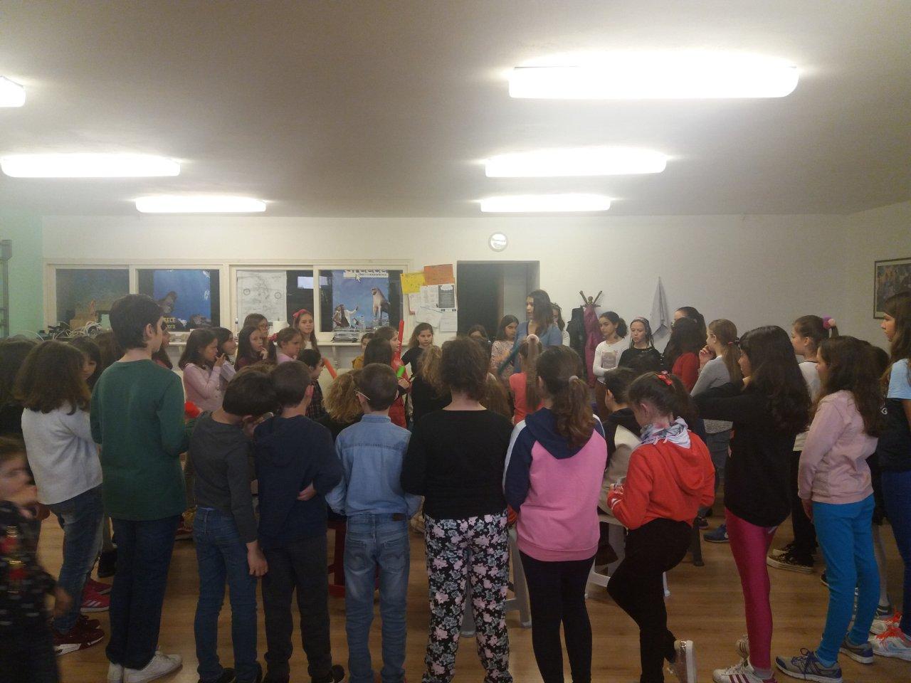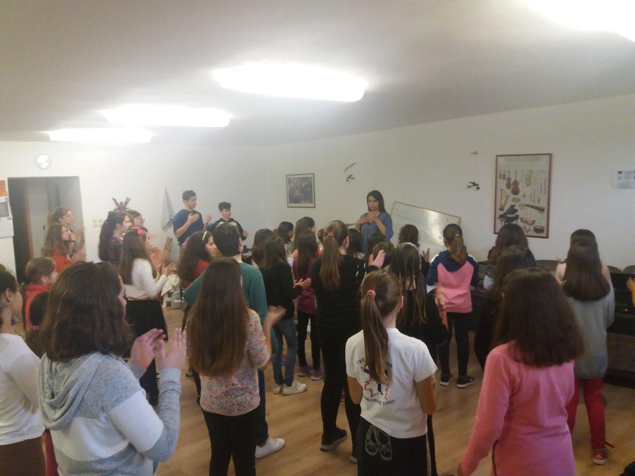 Την Κυριακή 17/3/19 η κα Χριστίνα Φόρτη πραγματοποίησε ένα ακόμη σεμινάριο Σωματικών Κρουστών (Body Percussion) με ελεύθερη συμμετοχή για όσα παιδιά εκτός χορωδίας θέλησαν να συμμετάσχουν. Τα παιδιά χωρίστηκαν σε ομάδες και«έχτισαν» το τραγούδι, παίζοντας και συμμετέχοντας ενεργά, σε ένα δημιουργικό και ιδιαίτερης καλλιτεχνικής αξίας σεμινάριο. Την ευχαριστούμε για μία ακόμη φορά!