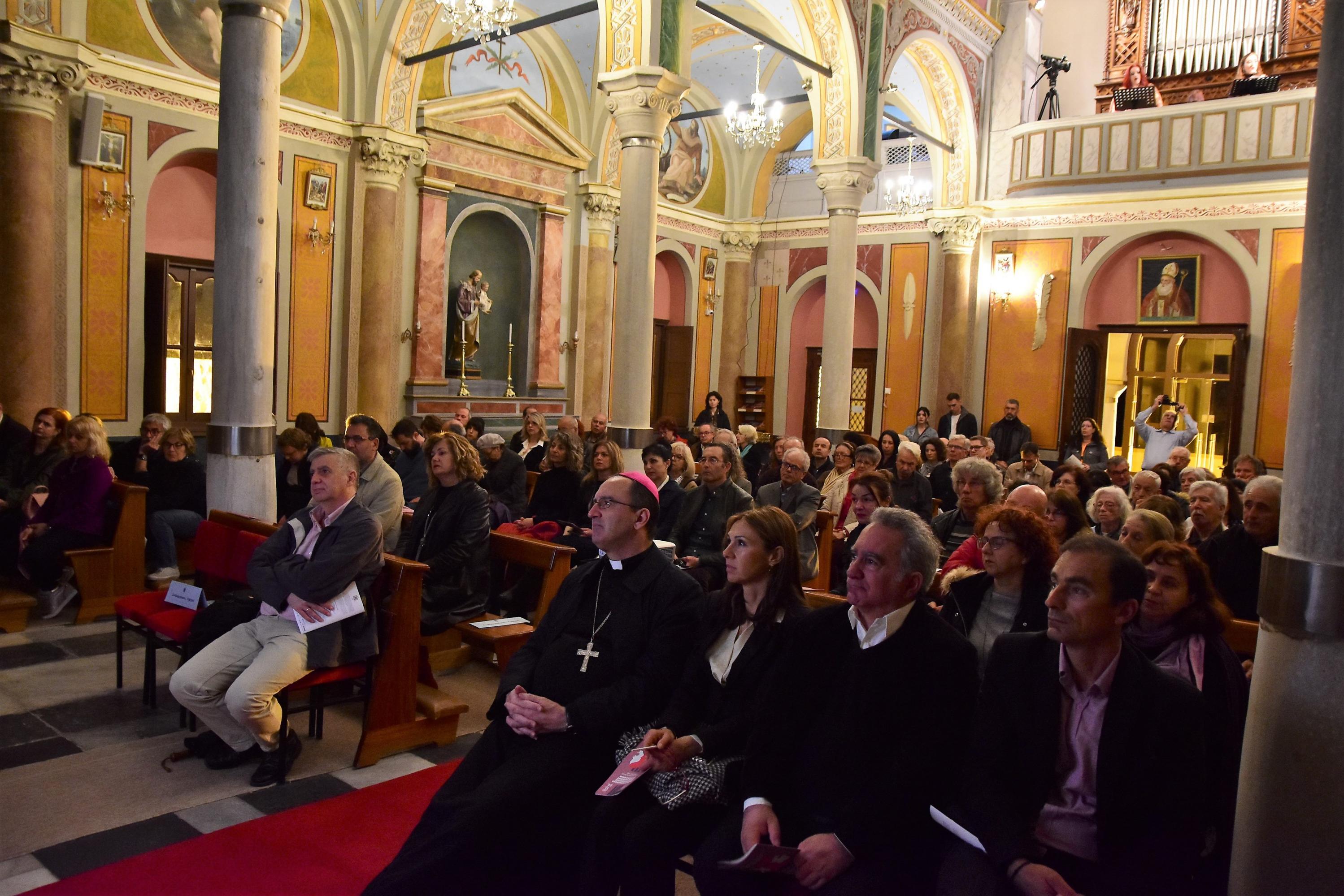 Η βροχή δεν εμπόδισε τους θεατές να πλημυρίσουν τον Καθεδρικό Ναό του Αγίου Γεωργίου στην Άνω Σύρο, για να παρακολουθήσουν το εξαιρετικό πρόγραμμα που είχαν ετοιμάσει η υψίφωνος Αγάπη Παπαμήτσου, η μεσόφωνος Ιωάννα Βρακατσέλη και η τσεμπαλίστα και πιανίστα Κατερίνα Κτώνα στο εκκλησιαστικό όργανο.