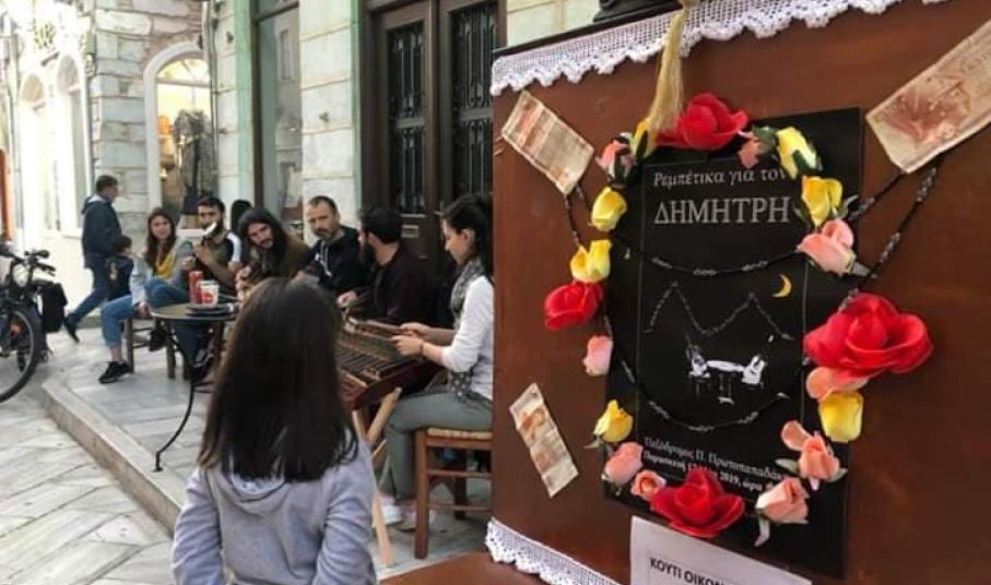 Η εκδήλωση «Ρεμπέτικα για τον Δημήτρη» πραγματοποιήθηκε το απόγευμα της περασμένης Παρασκευής στον πεζόδρομο της Πρωτοπαπαδάκη με στόχο την οικονομική ενίσχυση για τα νοσήλια του Δημήτρη Ρίζου, ο οποίος αν και έχει υποστεί σοβαρούς σωματικούς τραυματισμούς, συνεχίζει να προσπαθεί να έχει πίστη και να αγωνίζεται για την αποθεραπεία του.