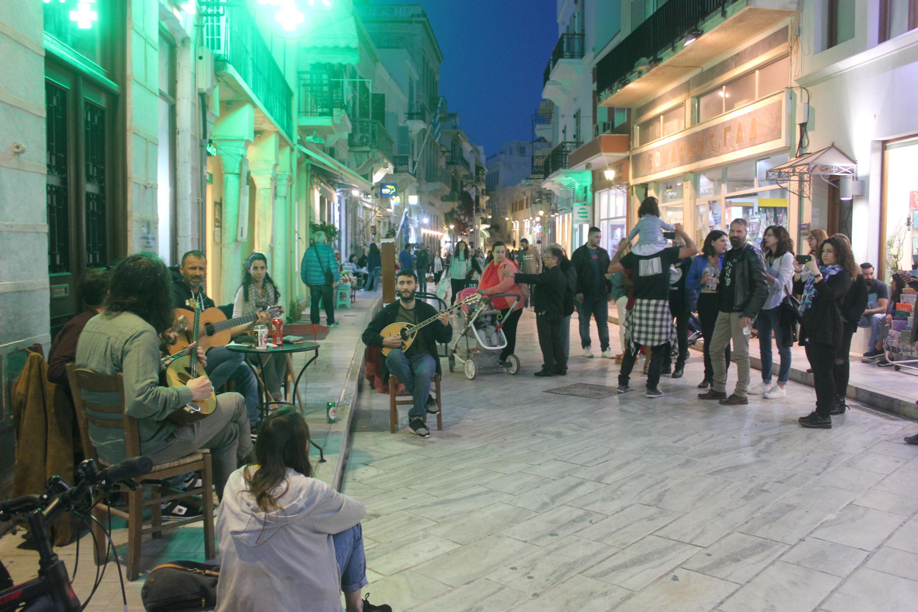 Κάτοικοι και επισκέπτες της Σύρου είχαν την ευκαιρία να απολαύσουν γνωστά και αγαπημένα τραγούδια, αλλά και να προσφέρουν τη βοήθειά τους στο κουτί οικονομικής ενίσχυσης, το οποίο είχε τοποθετηθεί στο σημείο της εκδήλωσης.