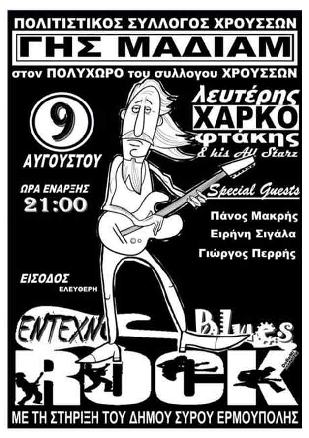 Η συναυλία πραγματοποιείται έναν χρόνο μετά την περσινή εμφάνιση των «Γης Μαδιάμ» στο Θέατρο «Ευανθία Καΐρη» στα Λαζαρέτα. Φέτος το αγαπημένο μουσικό σχήμα ανοίγει και πάλι τα φτερά του εκτός Ερμούπολης με ένα πλούσιο μουσικό πρόγραμμα που περιλαμβάνει μεγάλες επιτυχίες, αλλά και τραγούδια από το πλούσιο ρεπερτόριο του Λευτέρη Χαρκοφτάκη.