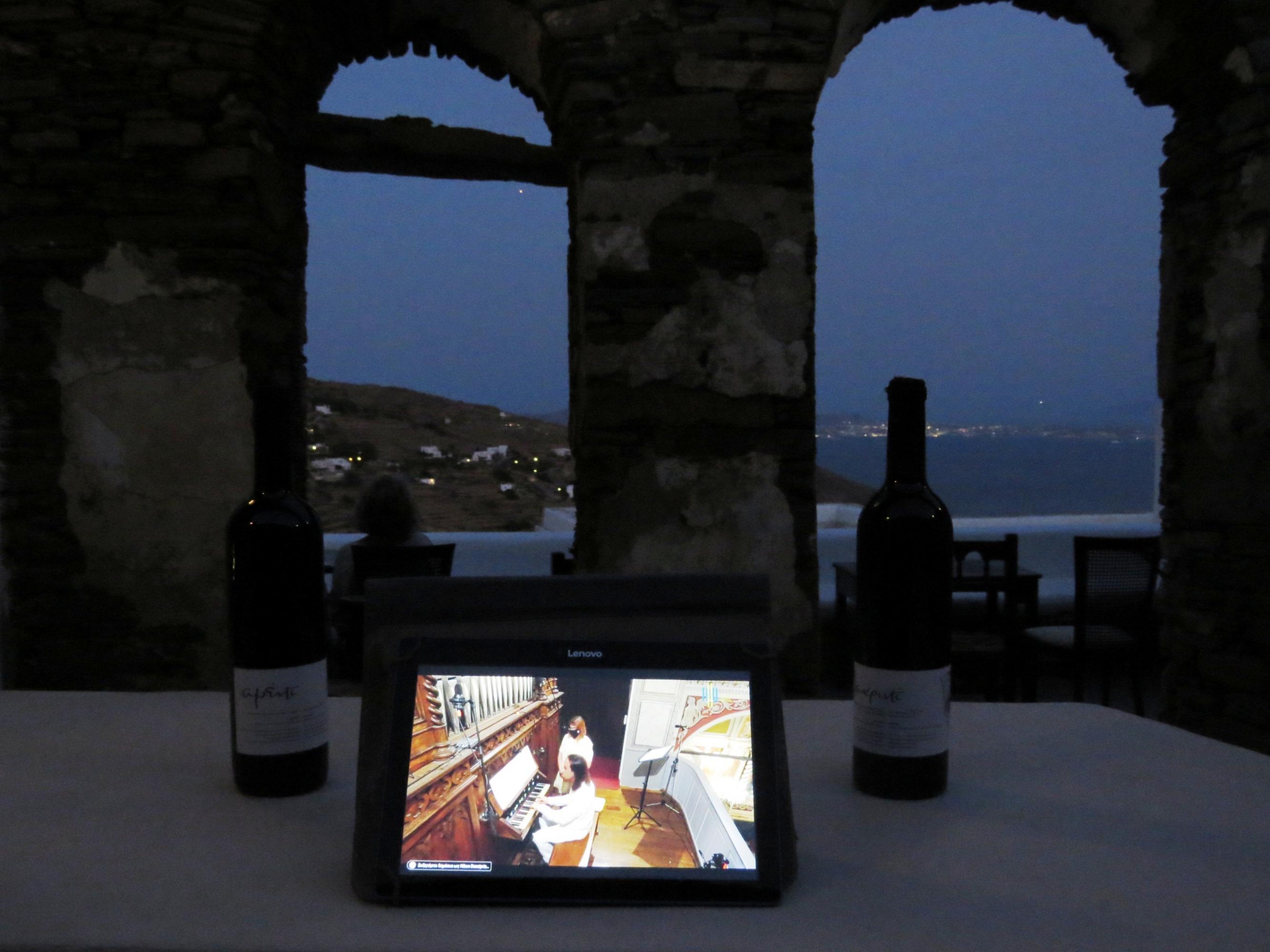 Κι αυτήν τη συναυλία είχαν τη δυνατότητα να απολαύσουν  θεατές σε όλο τον κόσμο, σε απ' ευθείας μετάδοση από τον Καθεδρικό Ναό Αγίου Γεωργίου Άνω Σύρου, μέσα από τις σελίδες του Φεστιβάλ ΑΝΩ σε YouTube και Facebook, καθώς  λόγω των μέτρων κατά της πανδημίας οι συναυλίες του Φεστιβάλ πραγματοποιούνται χωρίς την παρουσία κοινού εντός του ναού.