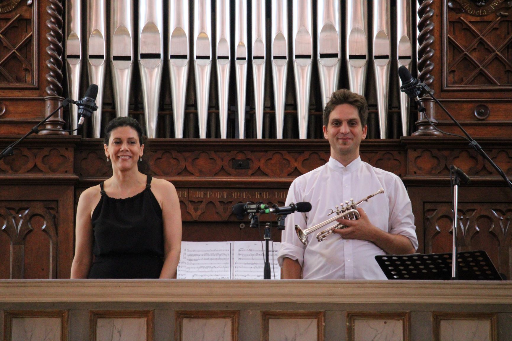 Δυο διακεκριμένοι δεξιοτέχνες η οργανίστα Ουρανία Γκάσιου και ο τρομπετίστας Δημήτρης Γκόγκας παρουσίασαν εμβληματικά έργα για εκκλησιαστικό όργανο και τρομπέτα.