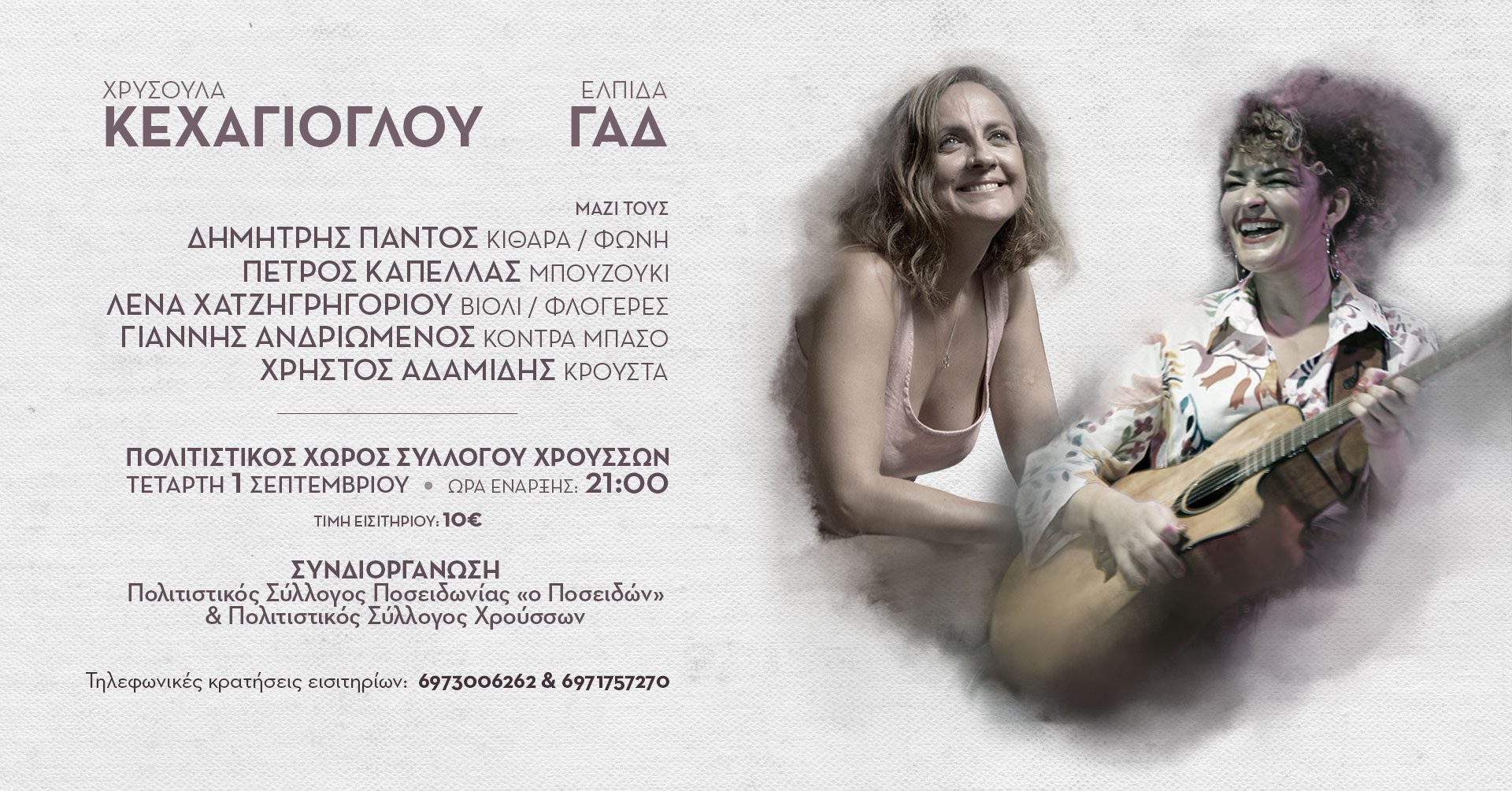 Οι Χρυσούλα Κεχαγιόγλου και η Ελπίδα Γαδ θα ανοίξουν τα φτερά τους για να τραγουδήσουν και να ξεκινήσουν ακόμη ένα από τα μαγικά τους ταξίδια. Είστε όλοι καλεσμένοι!