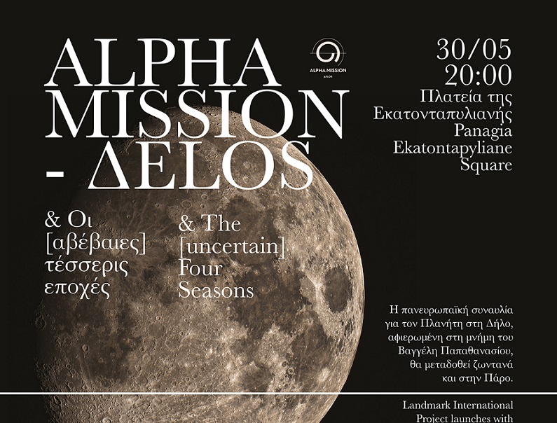 Μία από τις πιο σημαντικές εκδηλώσεις του ALPHA MISSION - ΔELOS έχει προγραμματιστεί για τις 30 Μαΐου 2022. Την ημέρα εκείνη το εμβληματικό νησί της Δήλου, το κοσμοπολίτικο κέντρο της Μεσογείου κατά την αρχαιότητα και σήμερα πλέον ένα ανοιχτό μουσείο, θα ζωντανέψει ξανά: Για πρώτη φορά στα χιλιάδες χρόνια της ιστορίας της, η Δήλος θα υποδεχθεί μια ορχήστρα κλασικής μουσικής, για μια συναυλία διεθνούς εμβέλειας και μεγάλης συμβολικής αξίας, καθώς είναι η εναρκτήρια για το ALPHA MISSION - ΔELOS.