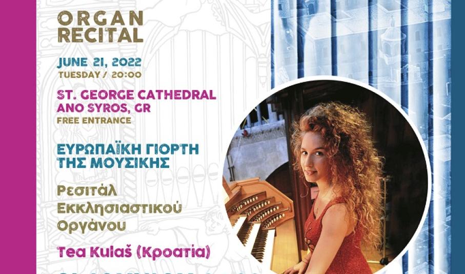 Πρεμιέρα για τις καλοκαιρινές του συναυλίες με τη συμμετοχή κοινού - ξανά μετά από δύο χρόνια - κάνει το Διεθνές Φεστιβάλ Εκκλησιαστικού Οργάνου «ΑΝΩ», γιορτάζοντας την Τρίτη, 21 Ιουνίου, στις 8 μ.μ, την Ευρωπαϊκή Ημέρα της Μουσικής 2022, αλλά και το Ευρωπαϊκό Έτος Νεολαίας, με τη συναυλία της νεαρής οργανίστα και καλλιτεχνικής διευθύντριας του Διεθνούς Φεστιβάλ Εκκλησιαστικού Οργάνου της πόλης Ζάνταρ (Κροατία), TeaKulaš. Η είσοδος για το κοινό είναι ελεύθερη.