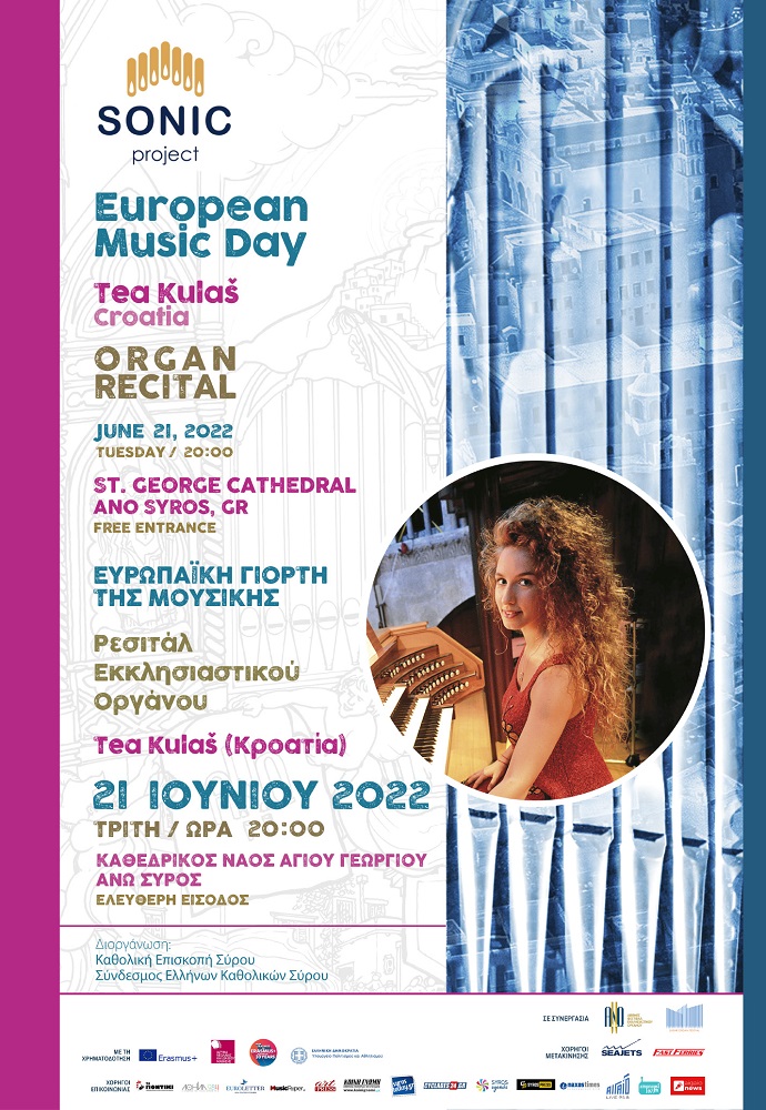 Το έργο SONIC είναι μια σύμπραξη ανάμεσα στην Ελλάδα και την Κροατία με στόχο την καλλιέργεια της κουλτούρας του εκκλησιαστικού οργάνου, κυρίως στο νεανικό κοινό. Το Διεθνές Φεστιβάλ Εκκλησιαστικού Οργάνου ΑΝΩ στη Σύρο και το Φεστιβάλ Εκκλησιαστικού Οργάνου του Ζάνταρ, συνεργάζονται προκειμένου να κεφαλαιοποιήσουν την τοπική πολιτισμική τους κληρονομιά και να δημιουργήσουν ένα καινοτόμο καλλιτεχνικό προϊόν για τις επόμενες γενιές. Το έργο το οποίο σχεδιάστηκε στη Σύρο με διαχειριστή τον Σύνδεσμο Ελλήνων Καθολικών Σύρου, στοχεύει στο να προκαλέσει την ενεργό συμμετοχή σε αυτό νέων καλλιτεχνών έως 30 ετών, μέσα από την ευαισθητοποίηση τους σχετικά με το εκκλησιαστικό όργανο και την πολυδιάστατη αξία του, καθώς και τη διαμόρφωση ενός βιώσιμου κοινωνικού αντίκτυπου. Λαμβάνοντας υπόψη τις σύγχρονες προκλήσεις, ένα ψηφιακό εργαλείο, σχεδιασμένο για χρήση από νέους καλλιτέχνες διαφόρων μορφών τέχνης, είναι διαθέσιμο σε ευρωπαϊκό επίπεδο με στόχο την εξέλιξή τους πέρα από γεωγραφικά και πολιτισμικά όρια.