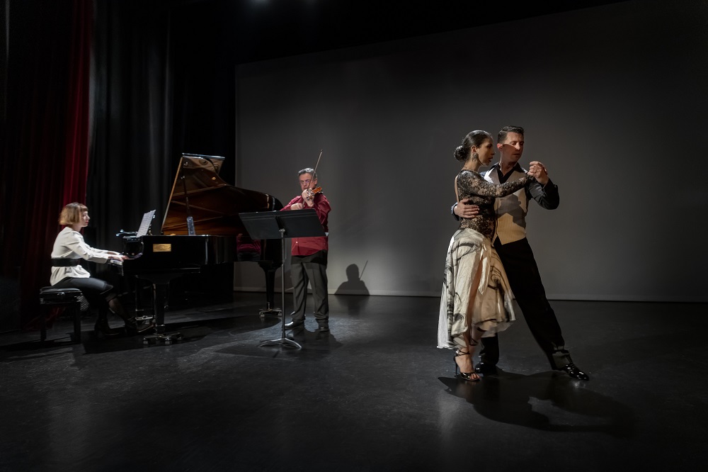 Η μοναδική μουσική του Astor Piazzola, μέσα από εκπληκτικές διασκευές για βιολί και πιάνο, πλημμύρισε την αίθουσα δημιουργώντας κλίμα συγκίνησης. Το ζευγάρι των χορευτών που πλαισίωσαν την παράσταση, ολοκλήρωσε με ξεχωριστό τρόπο τη βραδιά.