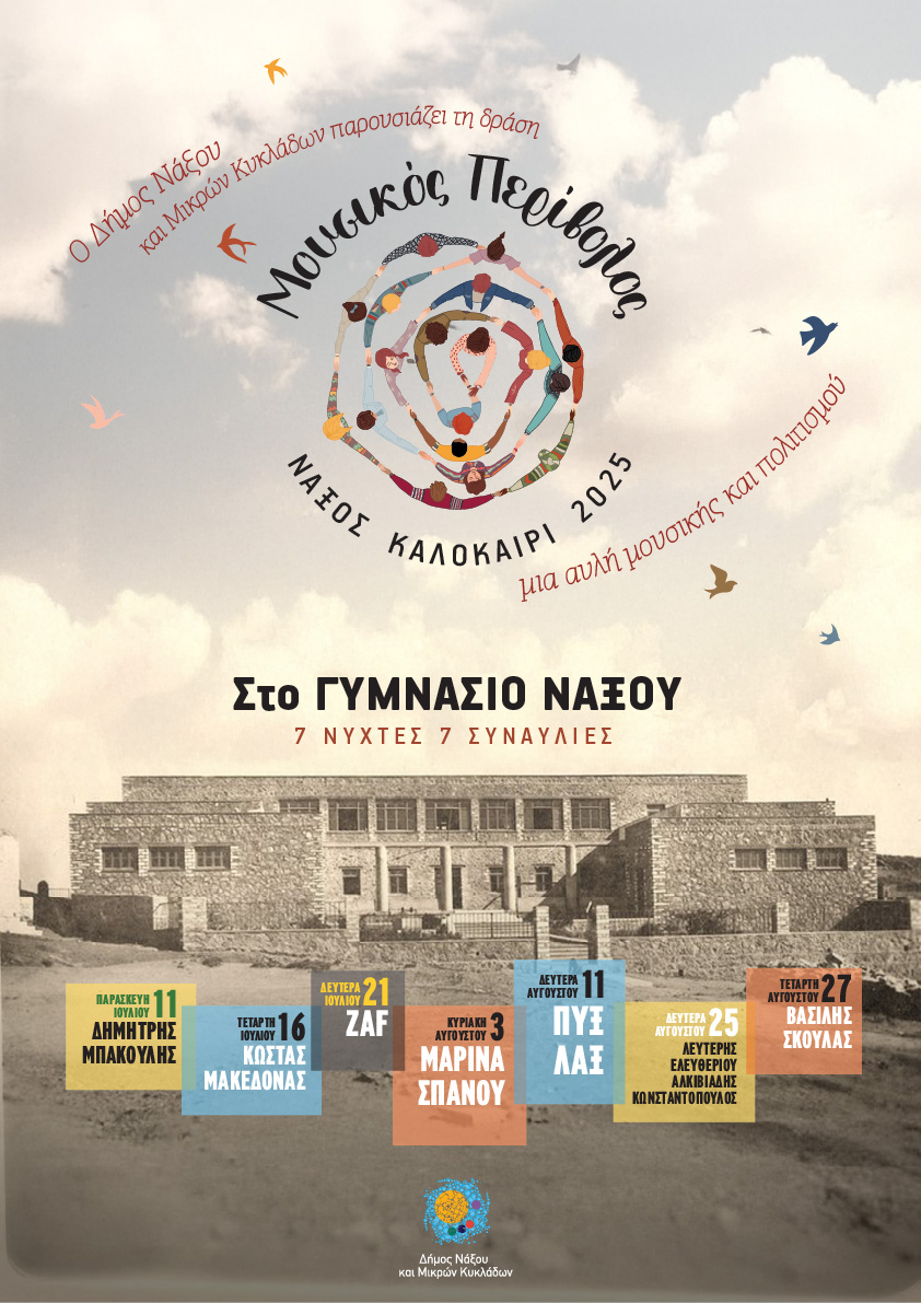 Ο Δήμος Νάξου και Μικρών Κυκλάδων εγκαινιάζει μια νέα πολιτιστική πρωτοβουλία, που φιλοδοξεί να αποτελέσει πυρήνα πολιτισμού για το φετινό καλοκαίρι: τον «Μουσικό Περίβολο», έναν ανοιχτό χώρο δημιουργίας, συνάντησης και έκφρασης για όλους.