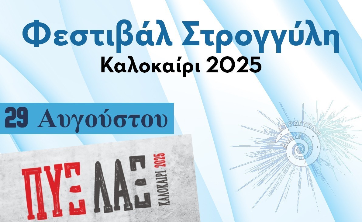 Οι Πυξ Λαξ, το θρυλικό συγκρότημα που έπαιξε καθοριστικό ρόλο στην ελληνική μουσική σκηνή, έρχονται για να δονήσουν ξανά τις καρδιές μας στο «8ο Φεστιβάλ Στρογγύλη» την Παρασκευή 29 Αυγούστου, στις 9 το βράδυ στον προαύλιο χώρο του Κλειστού Γυμναστηρίου Δήμου Θήρας.