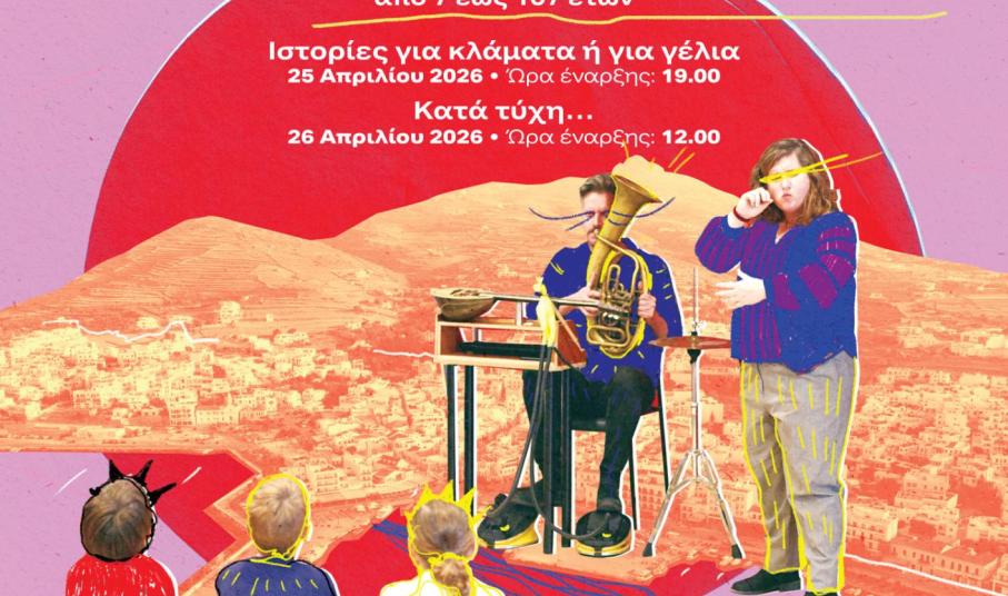 Στις 26 Απριλίου στις 12.00 παρουσιάζεται η Μουσική αφήγηση με τίτλο Κατά τύχη… Ιστορίες από διαφορετικές παραδόσεις αναδεικνύουν την έννοια της τύχης, άλλοτε ως κάτι που μας βρίσκει και άλλοτε ως κάτι που μπορούμε να διαμορφώσουμε. Πρίγκιπες, βασιλιάδες, μαγικά πλάσματα και οι τρεις μοίρες συνθέτουν έναν κόσμο γεμάτο χιούμορ, φαντασία και ανατροπές.