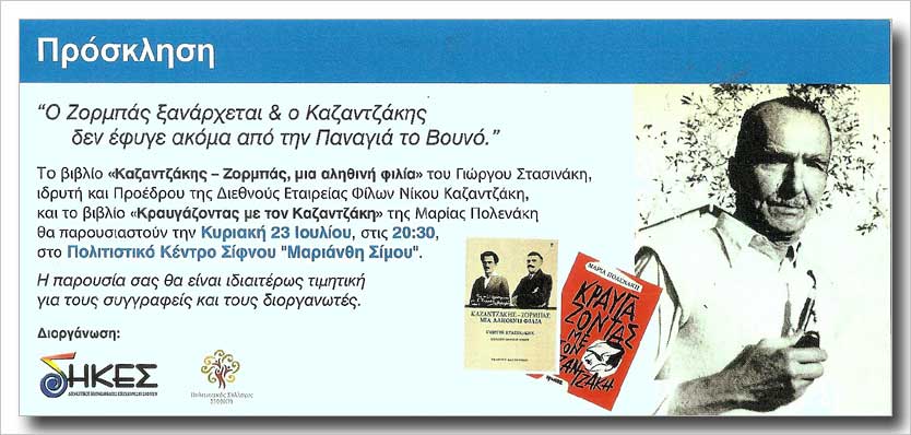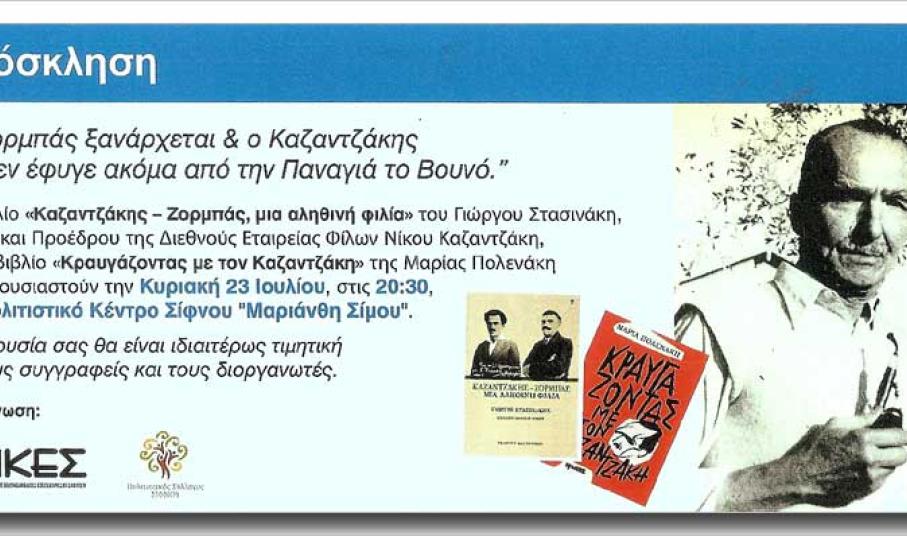 - Το βιβλίο του Γιώργου Στασινάκη «Καζαντζάκης – Ζορμπάς, μια αληθινή φιλία».