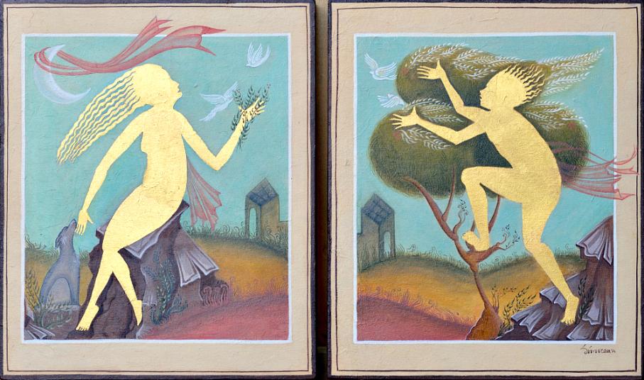 Η Δήμητρα Νατσκούλη, πατώντας στην πλούσια Βυζαντινή παράδοση, ζωγραφίζει πορτραίτα και συνθέσεις, που εμπνέονται από ψυχικές καταστάσεις. Έργα που δείχνουν προς μια διάσταση απλά απαλή, άχρονα άσπιλη.
