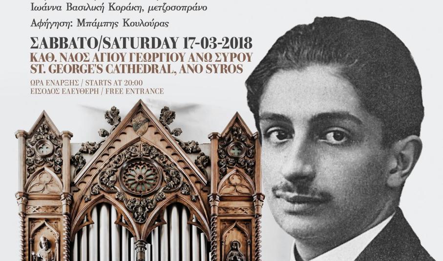 Στην εκδήλωση που θα περιλαμβάνει έργα για σόλο εκκλησιαστικό όργανο και έργα για σοπράνο και μετζοσοπράνο με συνοδεία εκκλησιαστικού οργάνου, θα διαβαστούν αποσπάσματα από την αυτοβιογραφία του αείμνηστου συγγραφέα, ποιητή, ακαδημαϊκού και Προέδρου της Ελληνικής Δημοκρατίας, Κωνσταντίνου Τσάτσου, ο οποίος σε νεαρή ηλικία μελετούσε στο εκκλησιαστικό όργανο που τότε βρισκόταν στον Καθεδρικό Ναό του Αγίου Διονυσίου Αθηνών και σήμερα στον Καθεδρικό Ναό Αγίου Γεωργίου Άνω Σύρου. Στο πρόγραμμα της εκδήλωσης περιλαμβάνονται έργα για εκκλησιαστικό όργανο και τραγουδιστές, γραμμένα κυρίως στο τέλος της Ρομαντικής Εποχής και στις αρχές του 20ου αιώνα, έτσι ώστε το κοινό να προσεγγίσει όσο το δυνατόν καλύτερα την εποχή που ο Κωνσταντίνος Τσάτσος μελετούσε στο συγκεκριμένο όργανο.