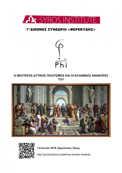 Στο πλαίσιο του πολιτιστικού προγράμματος του Δήμου Σύρου – Ερμούπολης «Σύρος Πολιτισμός 2019», το Ινστιτούτο Σύρου διοργανώνει Διεθνές Συνέδριο με θέμα : "O νεότερος Δυτικός πολιτισμός και οι ελληνικές αναφορές του". Το συνέδριο θα διεξαχθεί 7-9 Ιουνίου 2019 στο Θέατρο Απόλλων, με τη συμμετοχή προσωπικοτήτων των γραμμάτων, των επιστημών και των τεχνών, οι οποίοι έχουν προσκληθεί ως κεντρικοί ομιλητές. Το συνέδριο τελεί υπό την αιγίδα του Α.Ε. του Προέδρου της Δημοκρατίας κ. Προκοπίου Παυλοπούλου και περιλαμβάνει 3 διακεκριμένες ενότητες με τις ακόλουθες θεματικές: