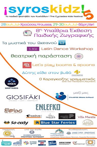 Το ¡syroskidz!, ένα φεστιβάλ ειδικά σχεδιασμένο για παιδιά, πραγματοποιείται για 5η χρονιά, στη Βάρη της Σύρου, με δράσεις που αφορούν στη θάλασσα και τα νησιά, από τις 28 μέχρι τις 30 Ιουλίου.