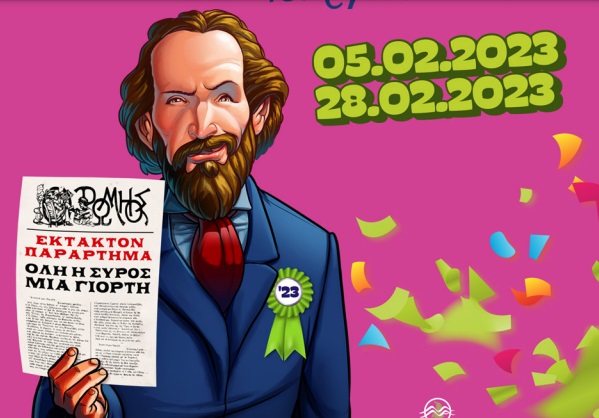 Γνωστοποιείται από τον δήμο Σύρου Ερμούπολης το επικαιροποιημένο πρόγραμμα του Συριανού Καρναβαλιού "Γεώργιος Σουρής" για το 2023.