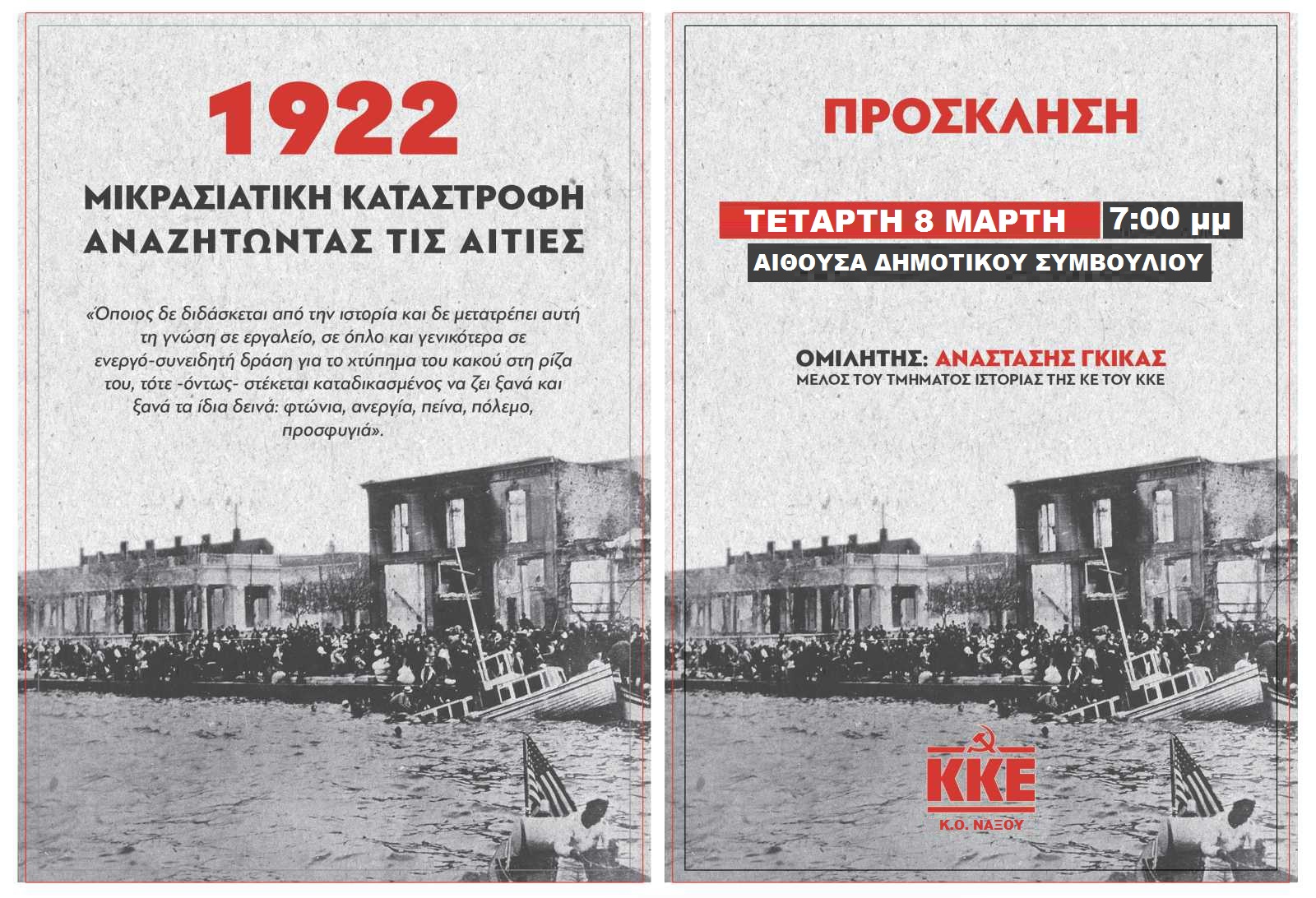 Εκδήλωση της ΚΟΒ Νάξου του ΚΚΕ για τη Μικρασιατική Καταστροφή. Δείτε αναλυτικά την αφίσα.