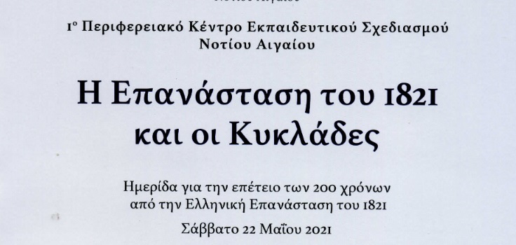 Το βιβλίο περιέχει τις εισηγήσεις εκπαιδευτικών από σχολεία των Κυκλάδων στην Ημερίδα που διοργάνωσε το ΠΕ.Κ.Ε.Σ. τον Μάιο του 2021, στο πλαίσιο των εκδηλώσεων για τα 200 χρόνια από την Ελληνική Επανάσταση.