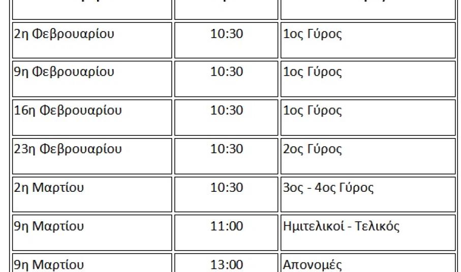 Σύστημα αγώνων και μέγιστος χρόνος κάθε παρτίδας